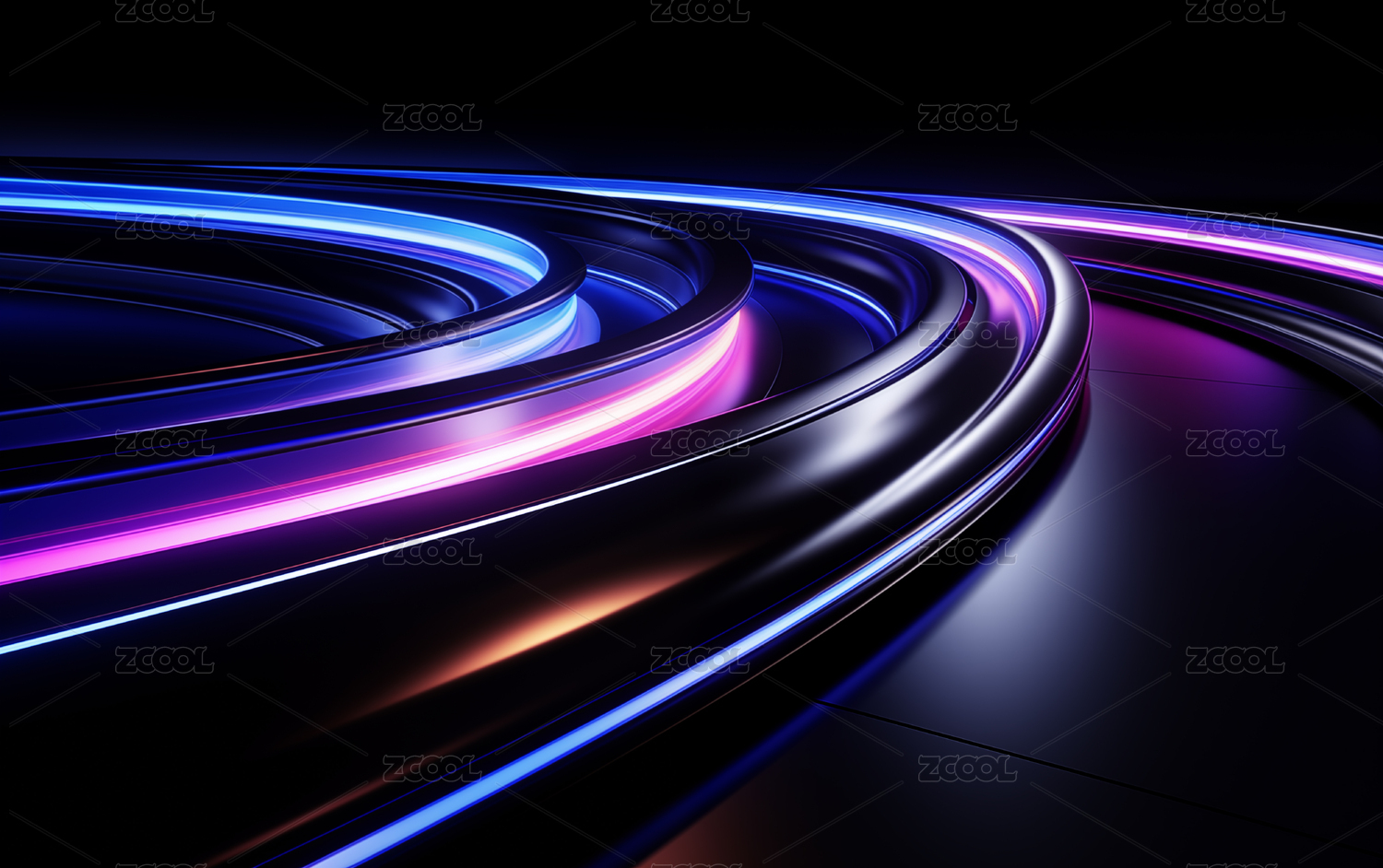 炫彩未来科技感3D蓝橙光流抽象风格背景