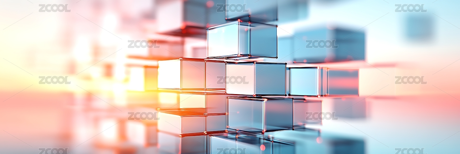抽象蓝色透明悬浮立方体商务科技主题背景