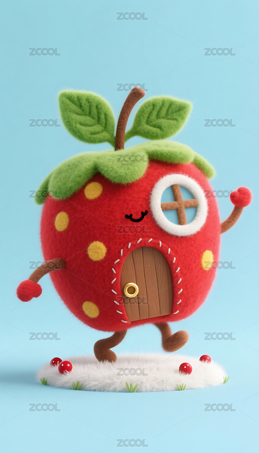 3D建模羊毛毡毛绒绒质感草莓屋模型