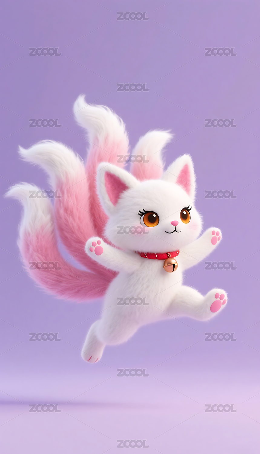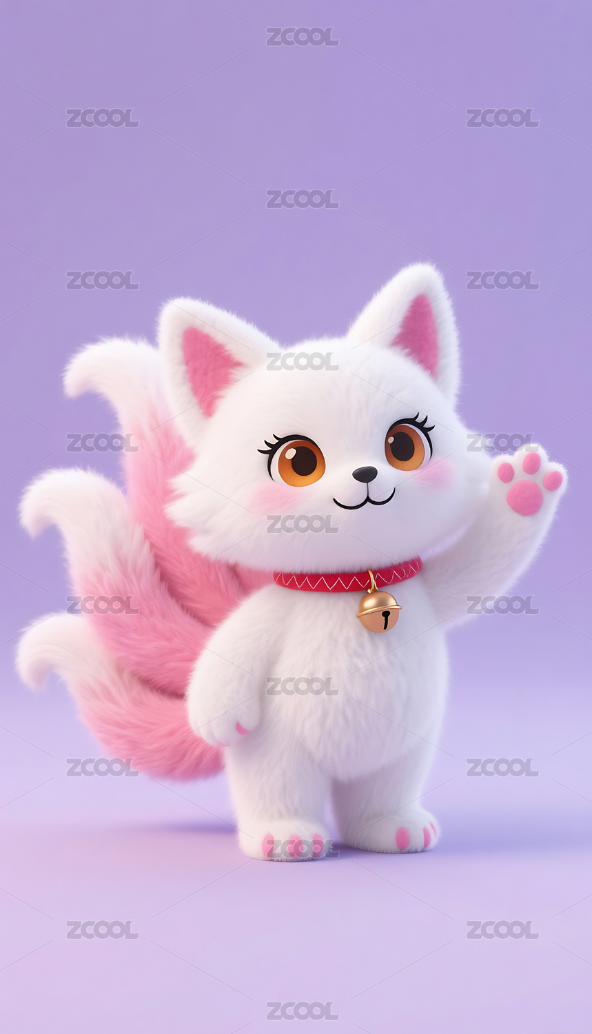 狐狸,九尾妖狐,3D,建模,可爱,卡通,模型,素材,羊毛毡,毛绒绒
