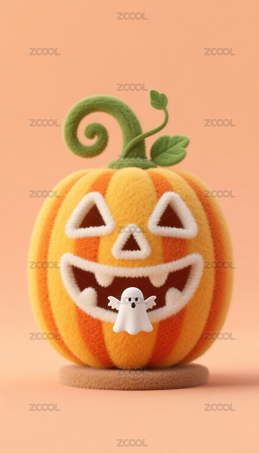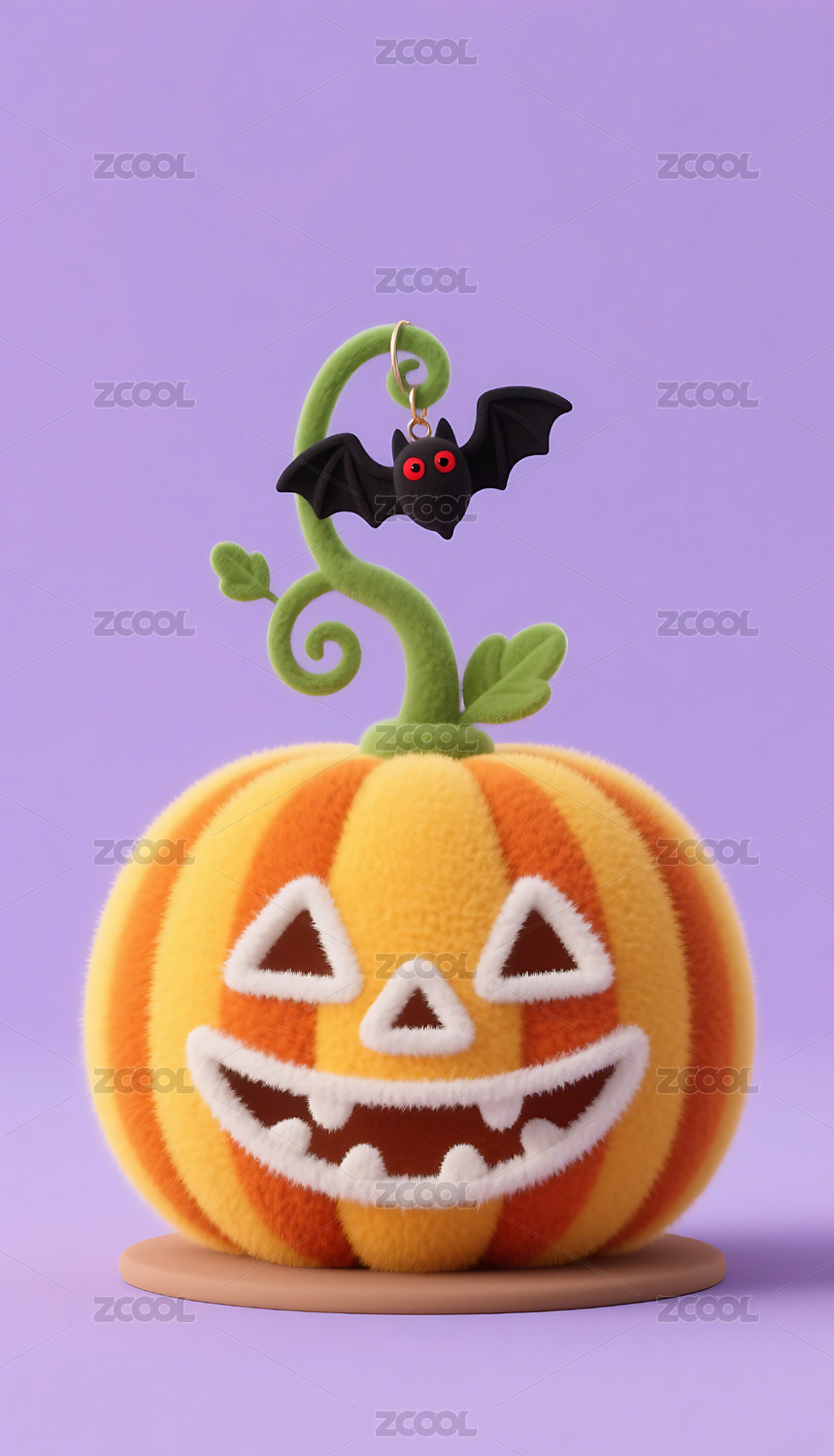 3D建模羊毛毡毛绒绒质感万圣节南瓜头模型