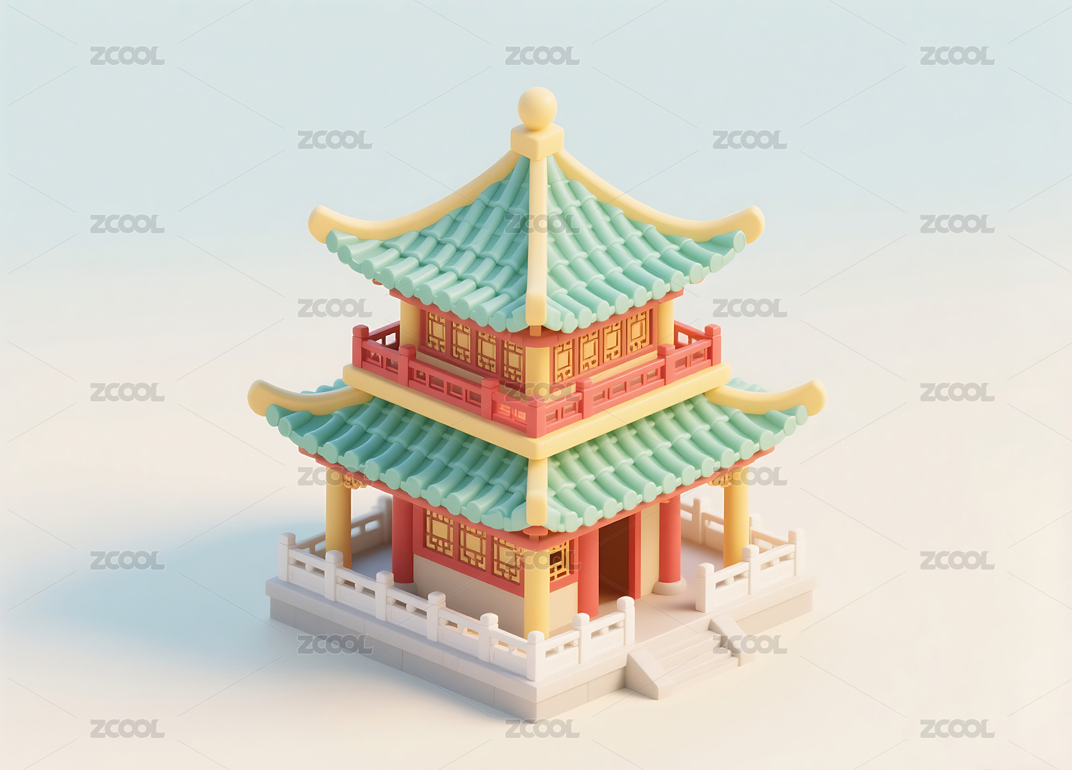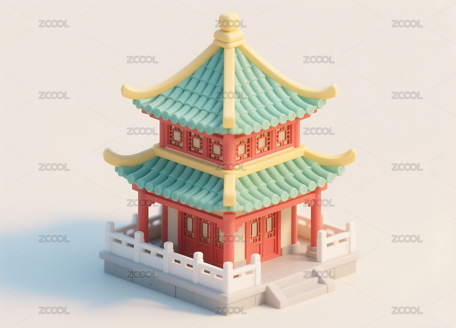 3D,建模,古建筑,模型,素材,卡通,传统,中式
