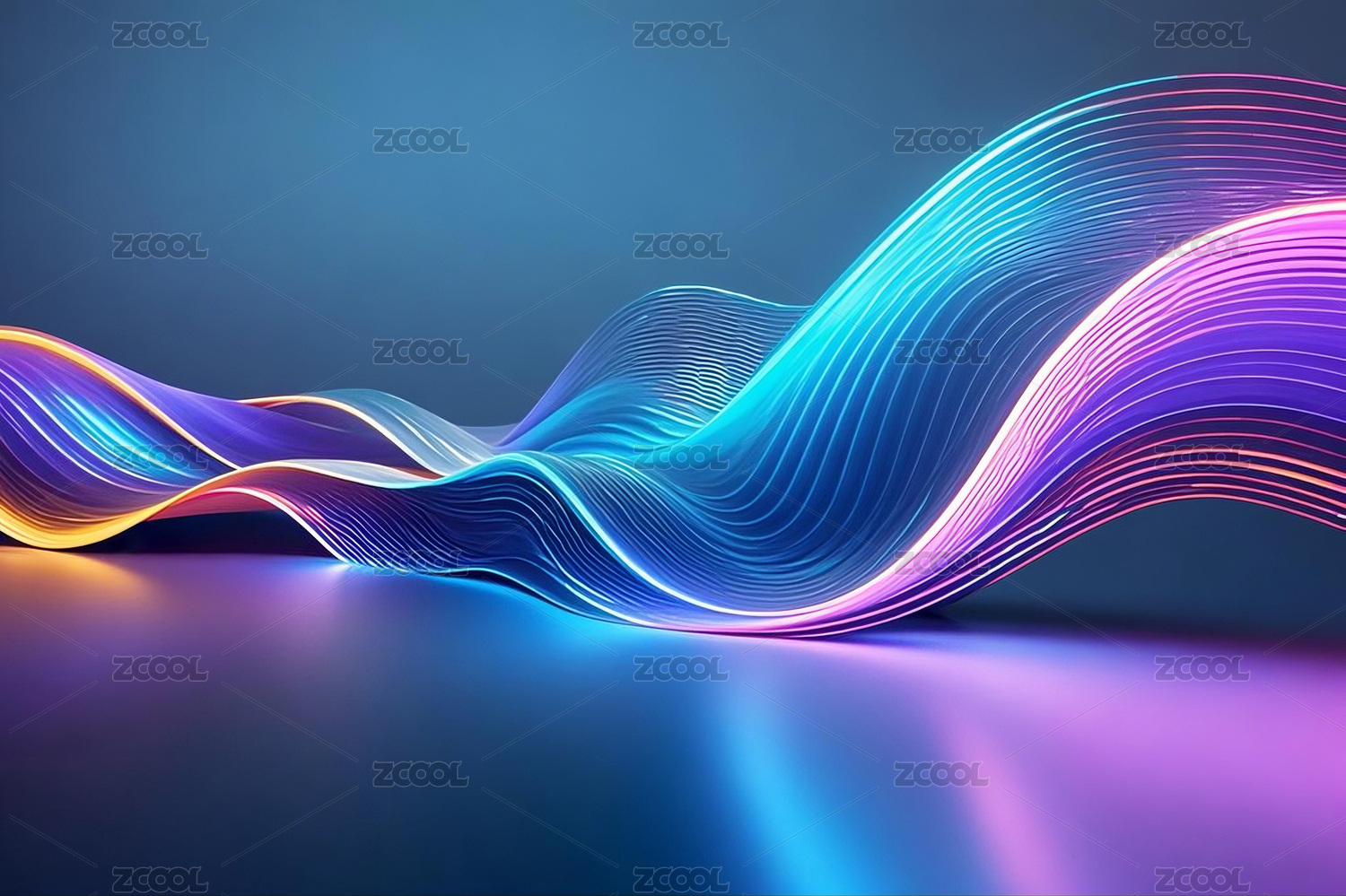 数码紫蓝色发光波浪曲线抽象图形海报背景