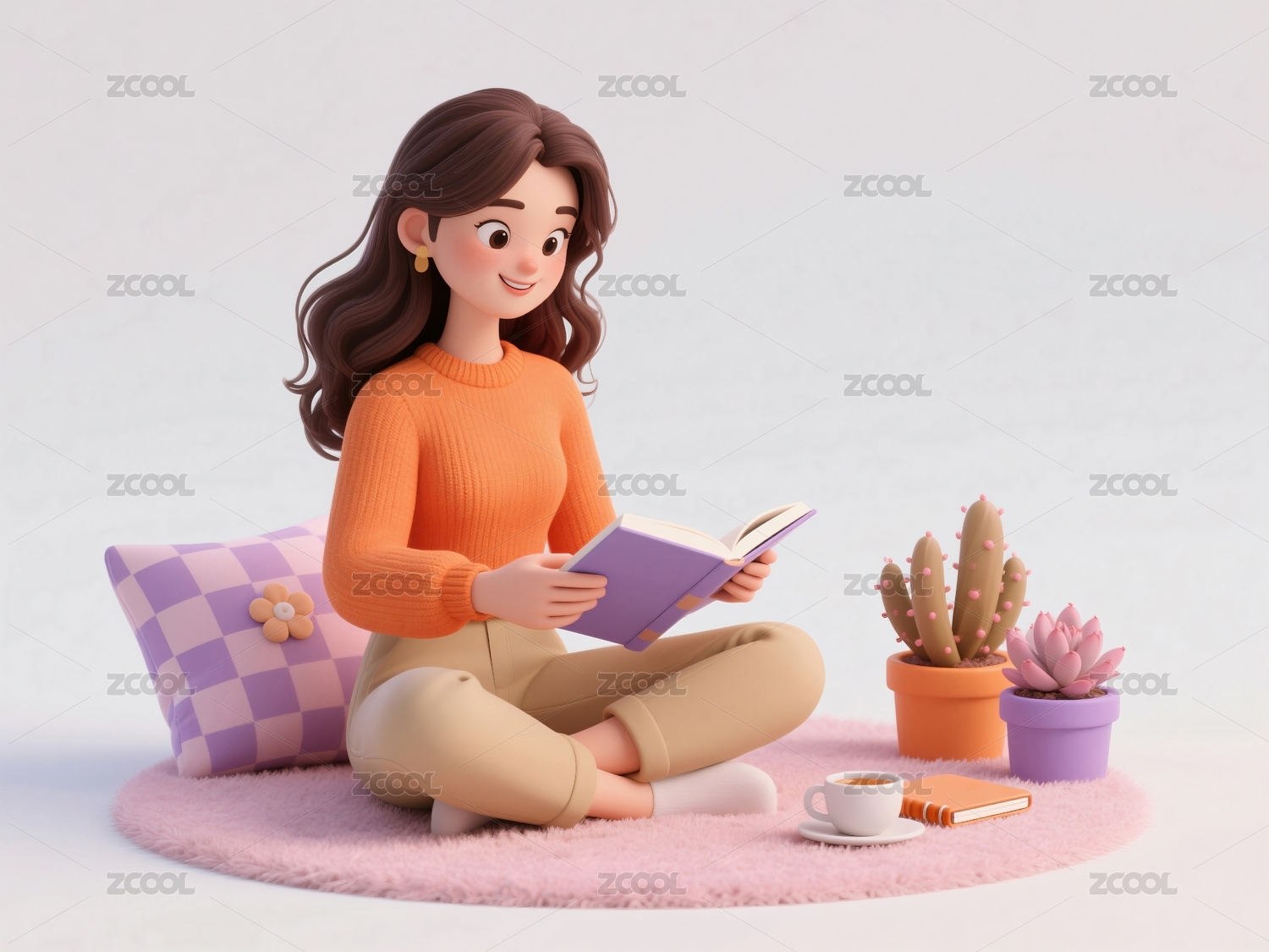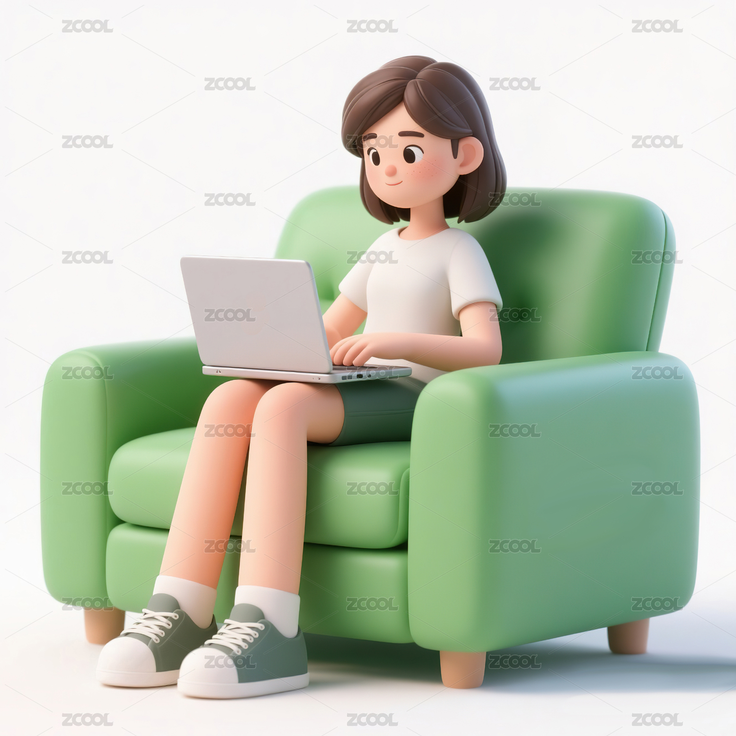 沙发上开心拥抱的两个女孩3D卡通人物场景