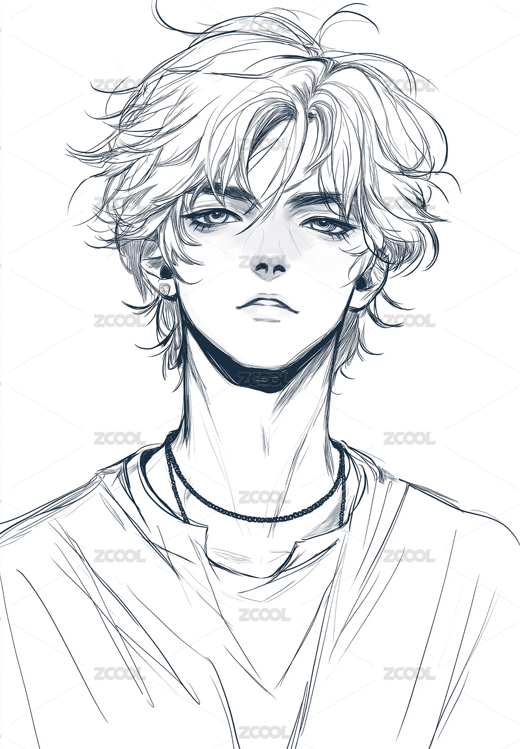 线稿,动漫,少年,酷飒,形象,插画,发型,线条,艺术,简约