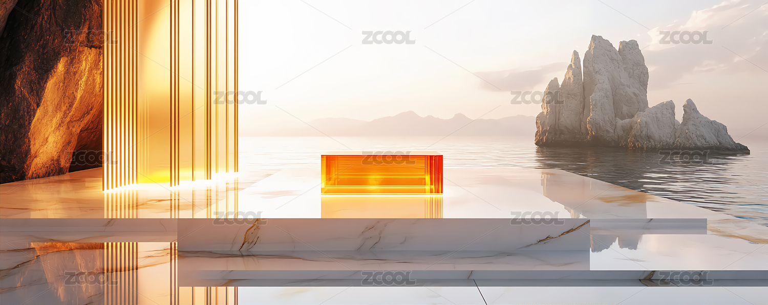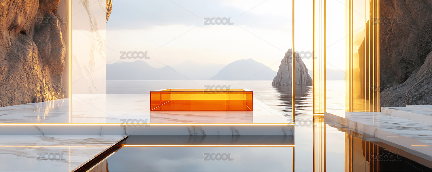 建筑,三维,场景,天空,地形,水,游泳池,背景,黄色,光影