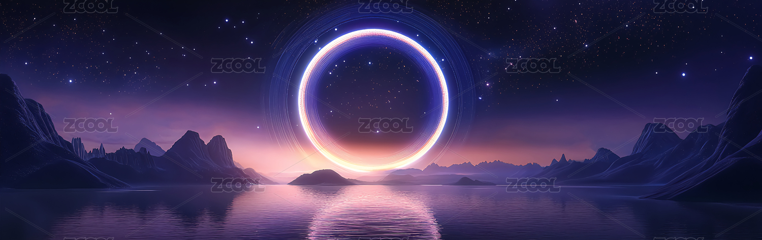 梦幻山谷里的湖泊光环
