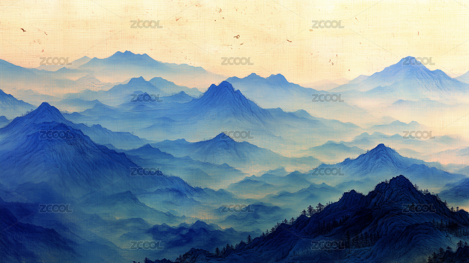 新中式山水风景高端背景素材