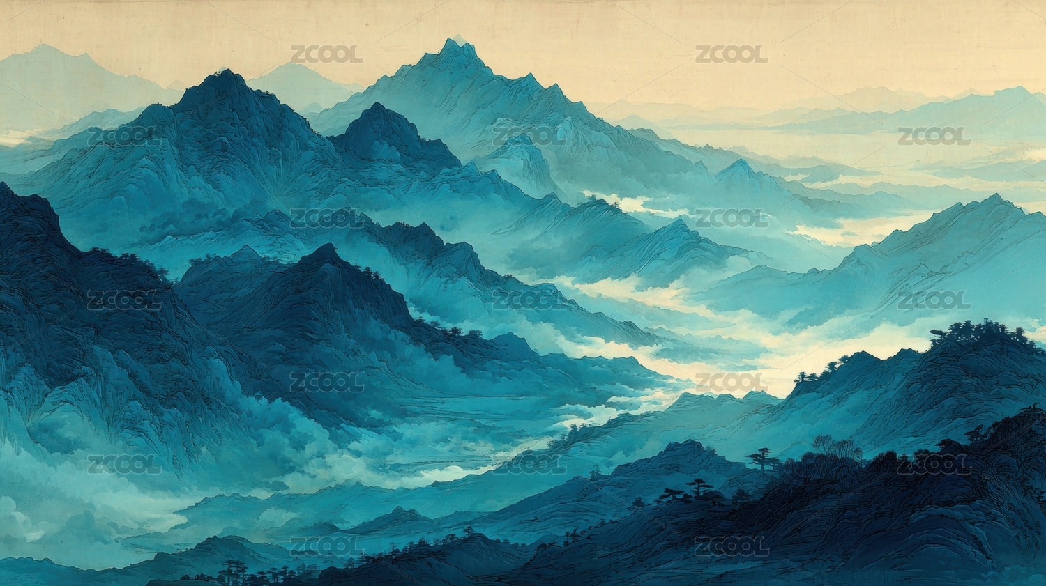 蓝调山峦与云海