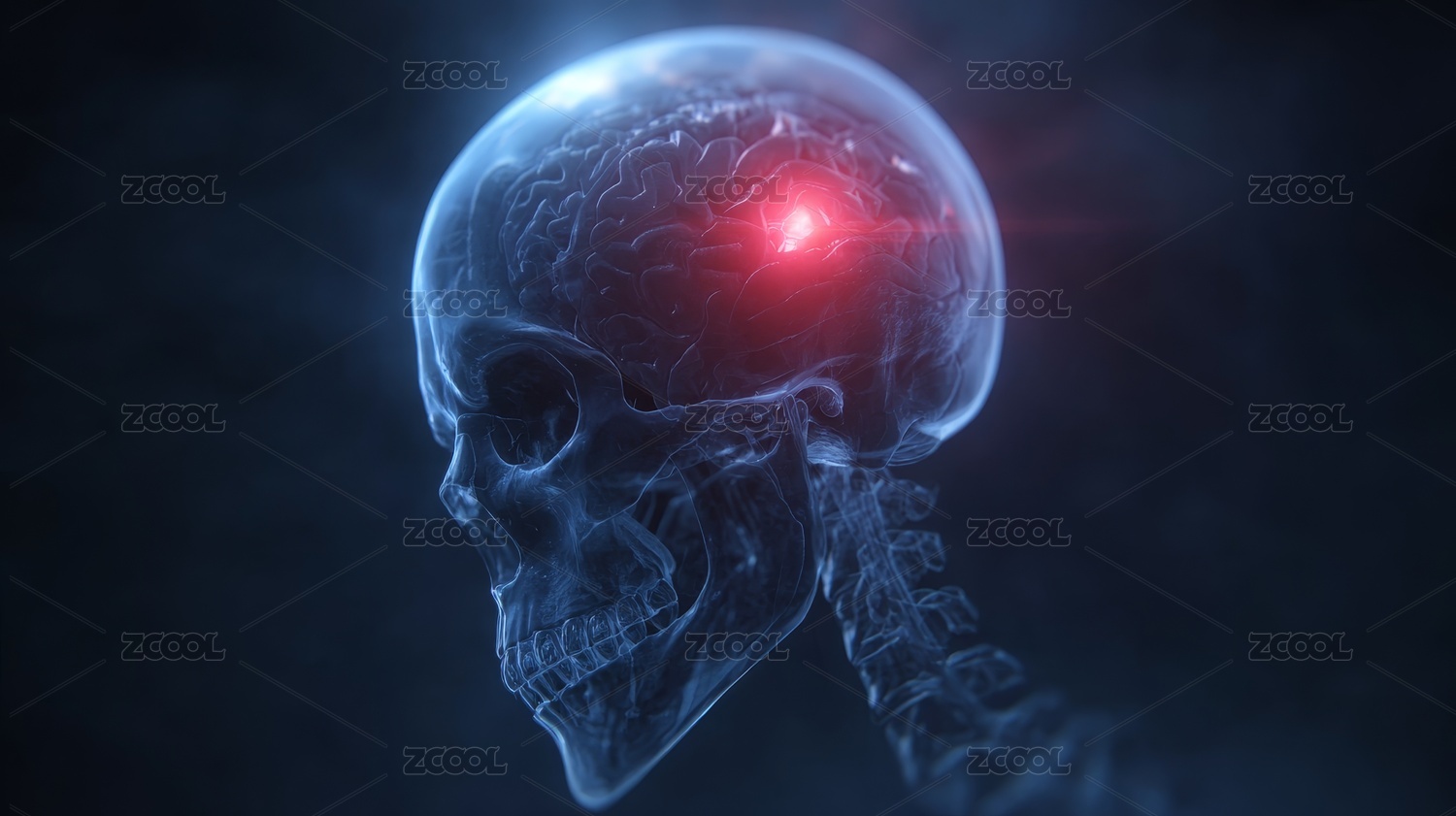 透明头骨内红色脑部图