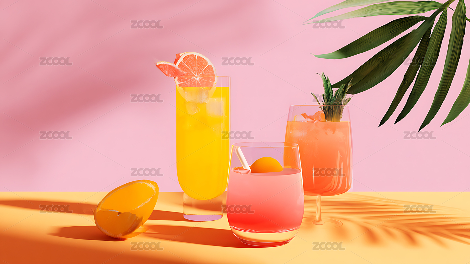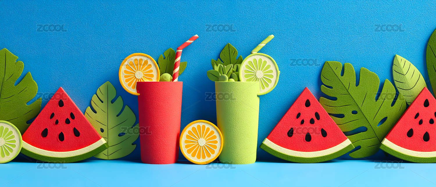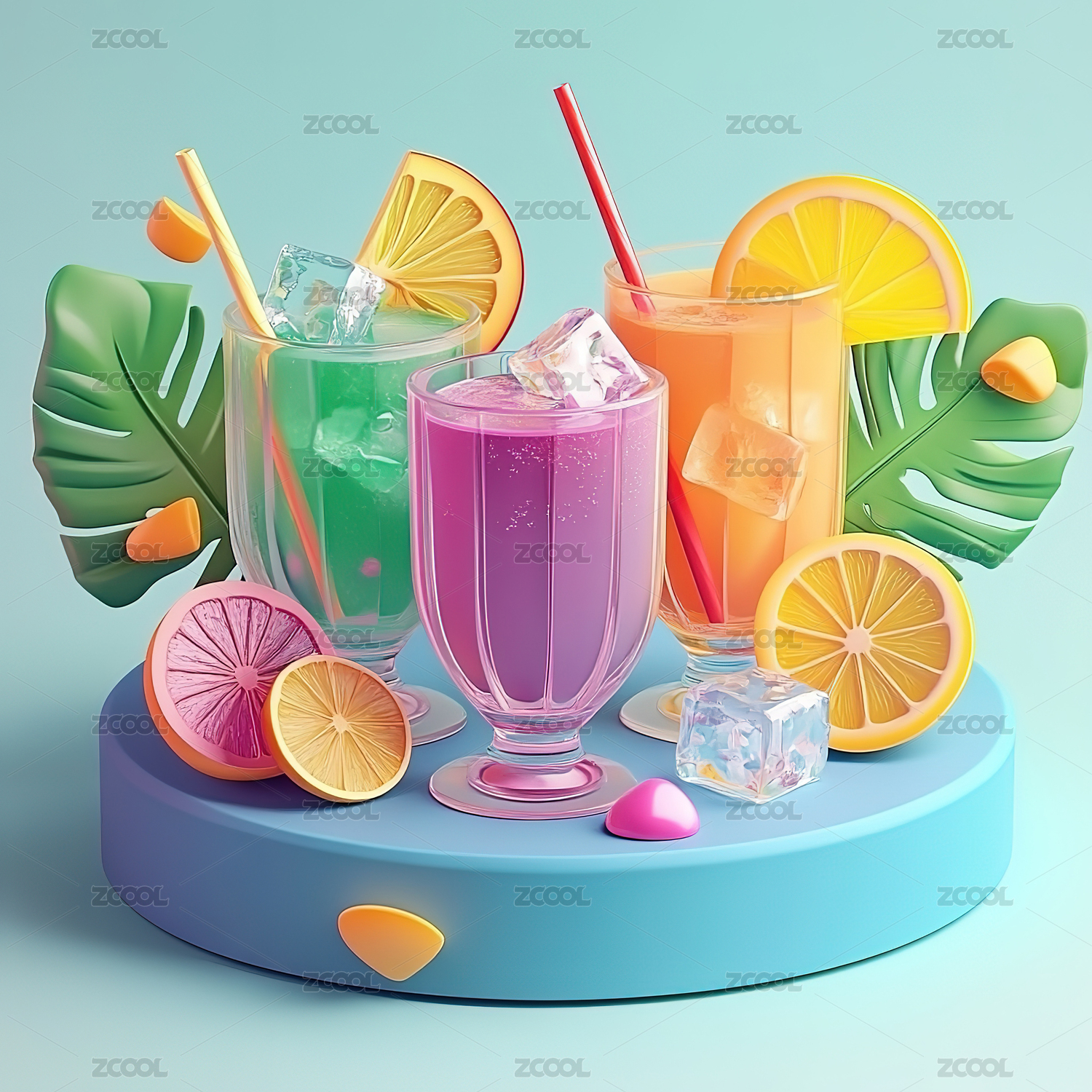 夏季水果茶饮料食品健康夏至节气清凉插画