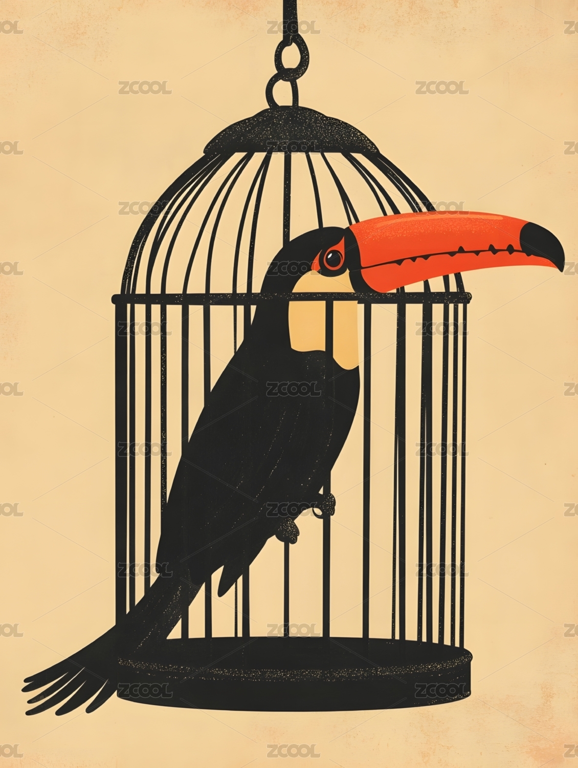 飞鸟,鸟笼,离开,插画,自由,概念,艺术,抽象,黑白,对比
