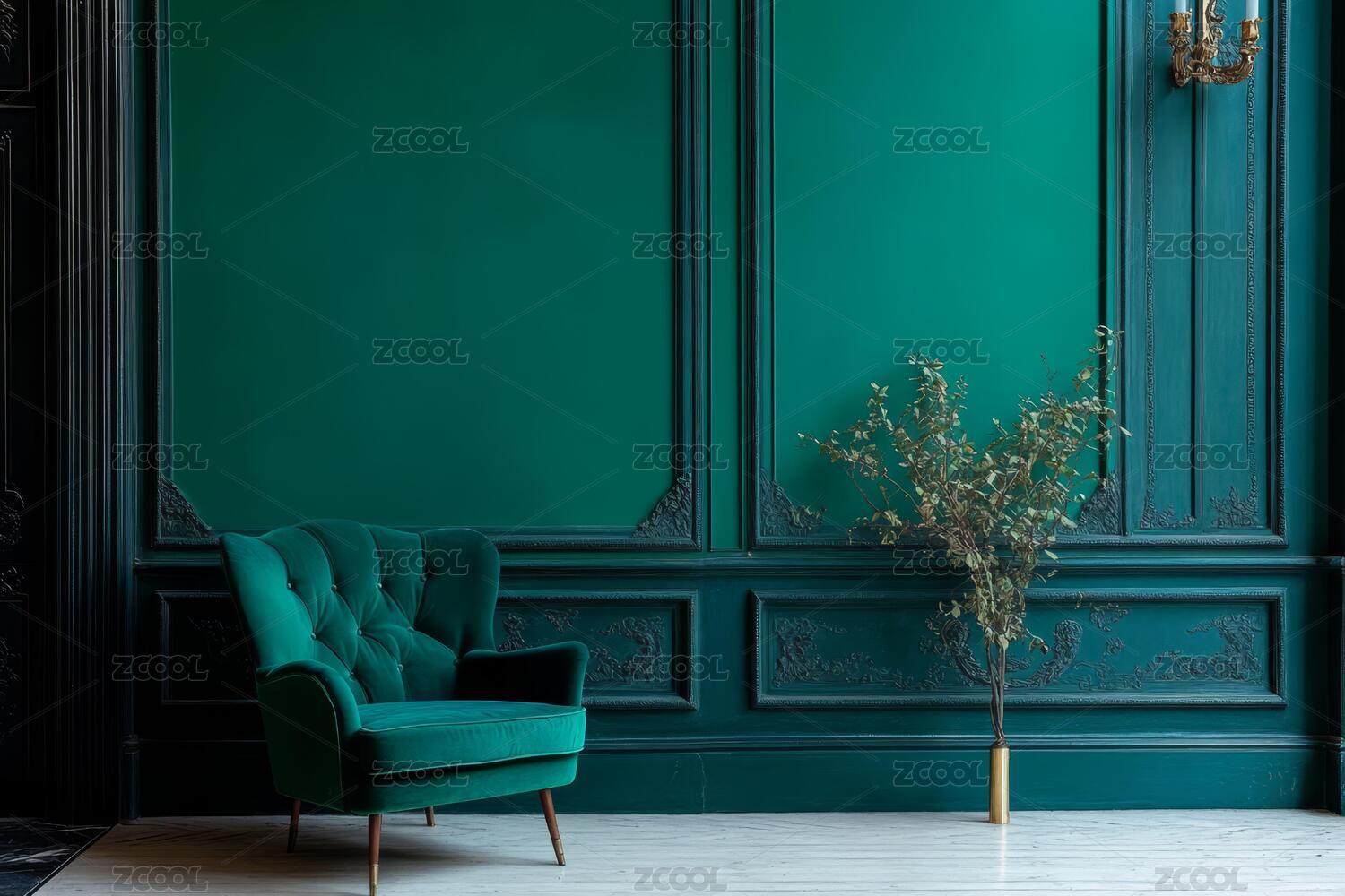 翡翠绿房间搭配绒面扶手椅