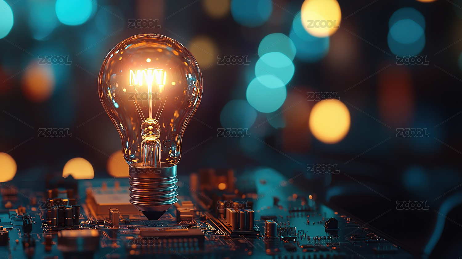 电路板,发光,灯泡,特写,科技,未来,感元素,创新,创意,设计