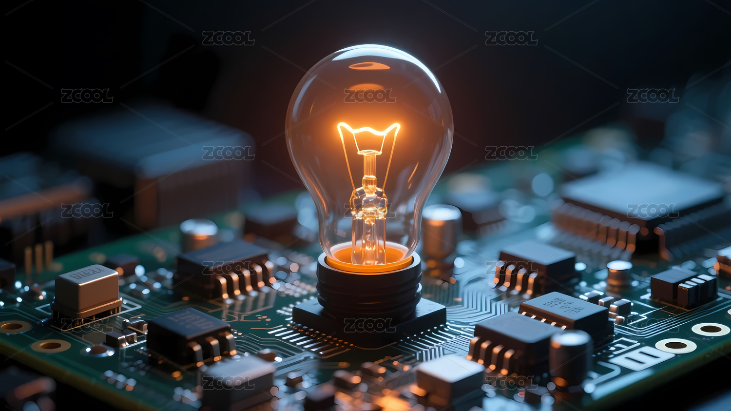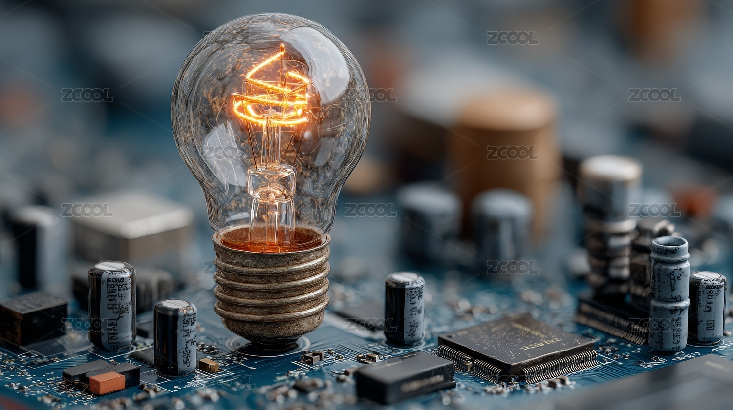 电路板,发光,灯泡,特写,科技,未来,感元素,创新,创意,设计
