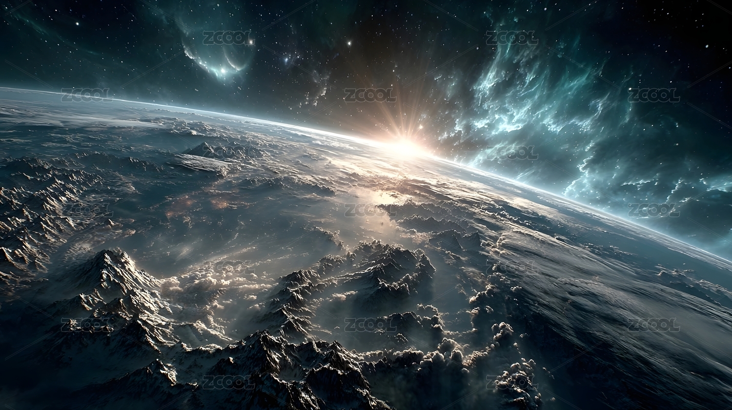 山脉,地平线,山峰,云朵,太阳,天空,云层,日出,晨光,地球