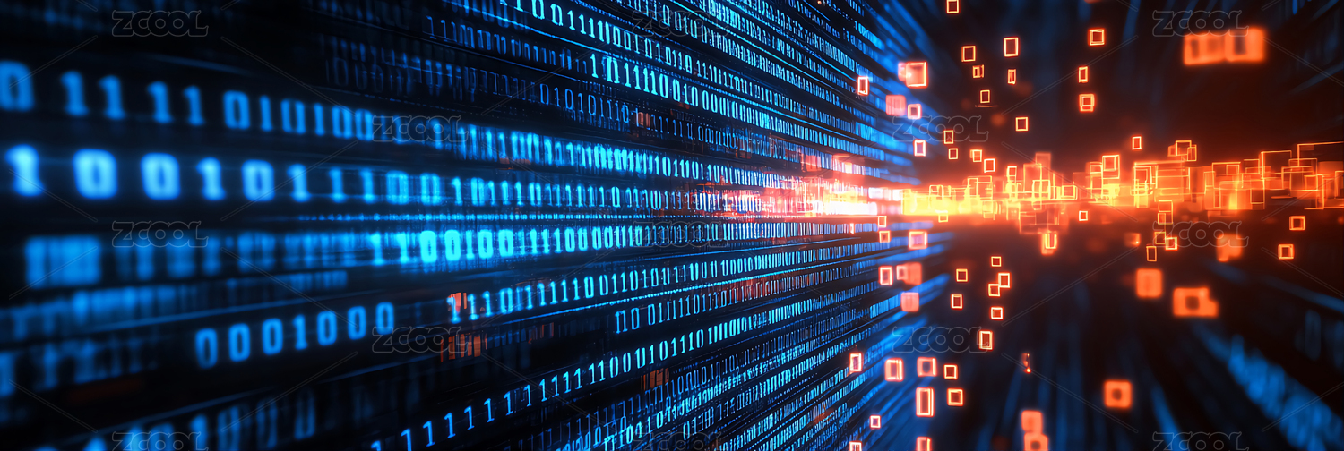 人工智能,传输,科技,背景,三维,空间,蓝橙色,数据流,渐变,光影