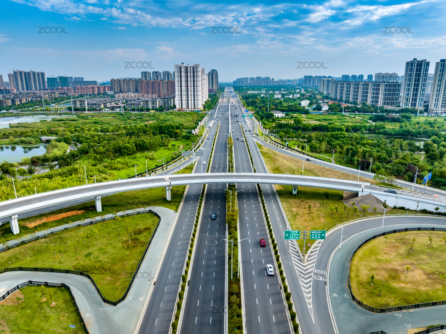 夏季白天武汉杨泗港长江大桥互通式立交全景