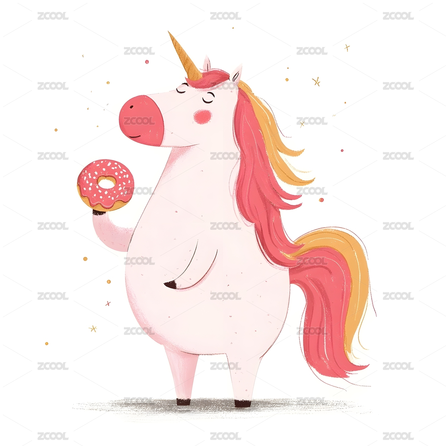 独角兽手持粉色甜甜圈