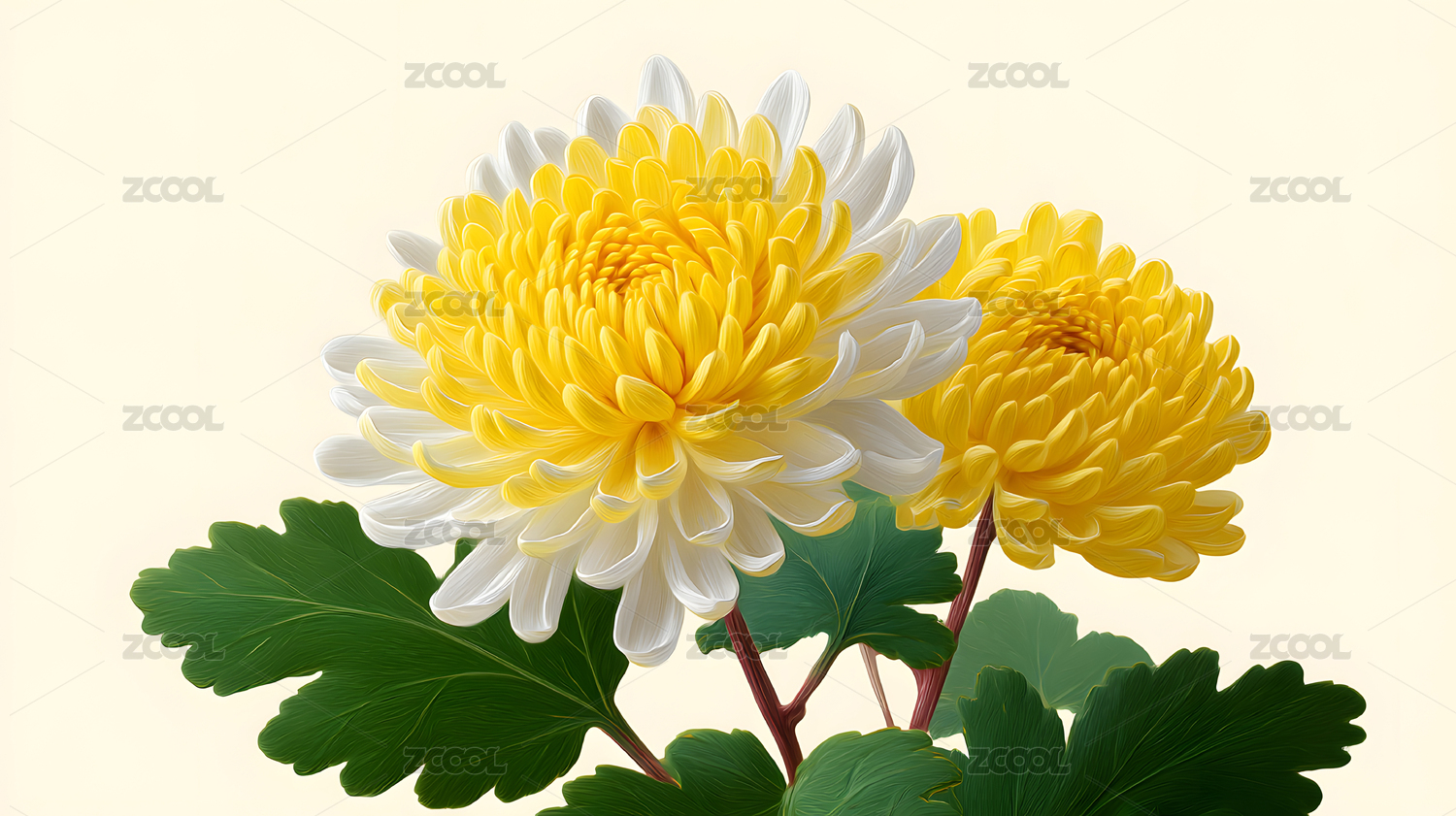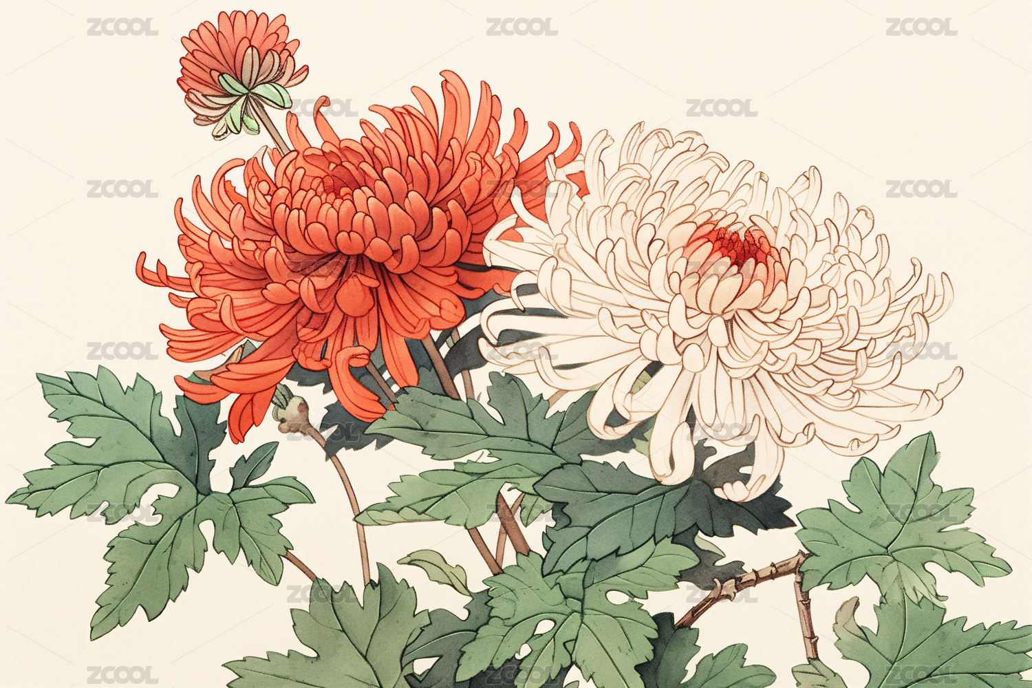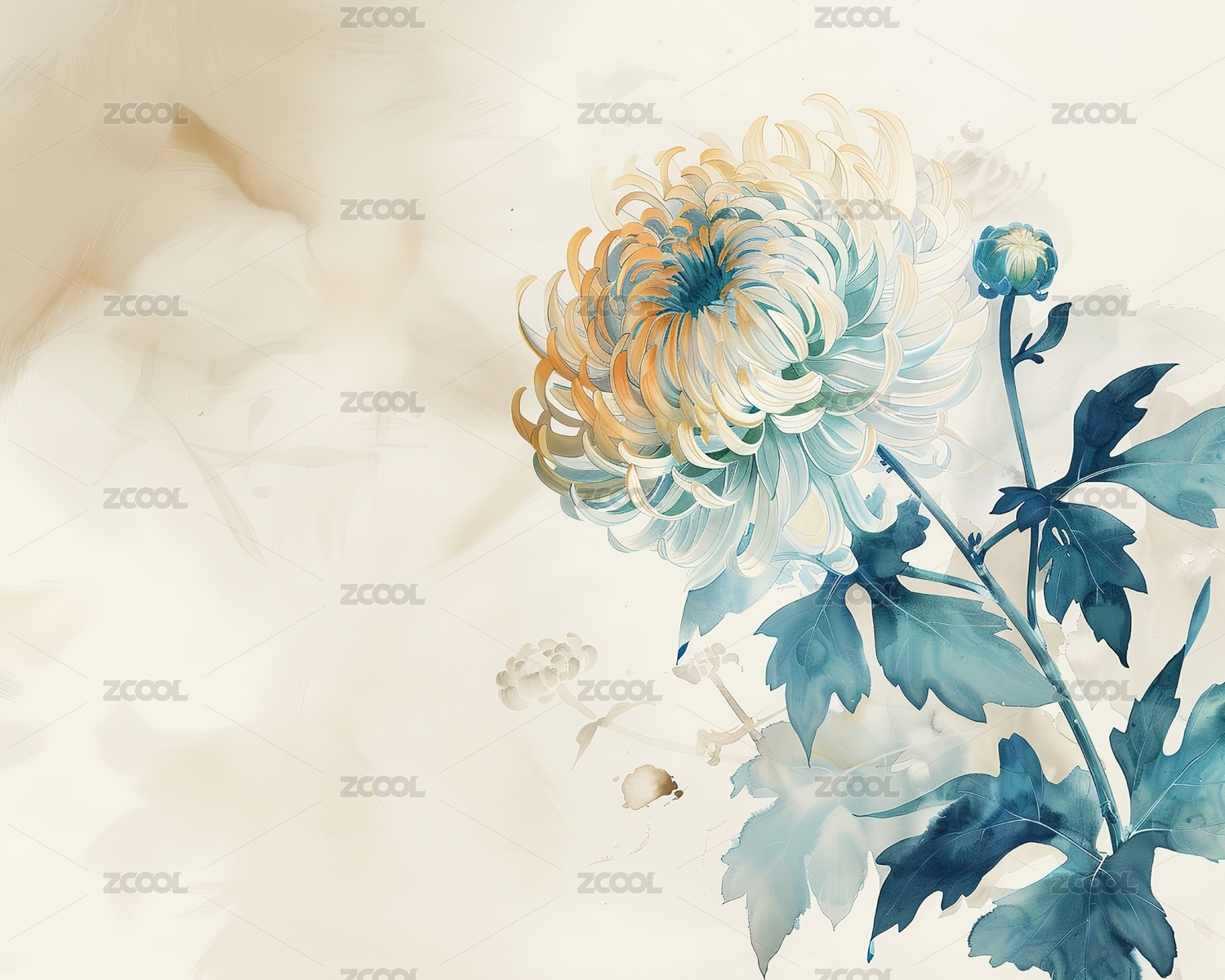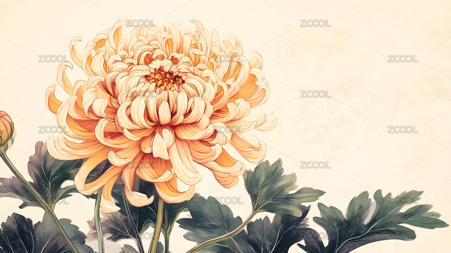 秋天菊花插画,传统秋分节气植物,重阳节概