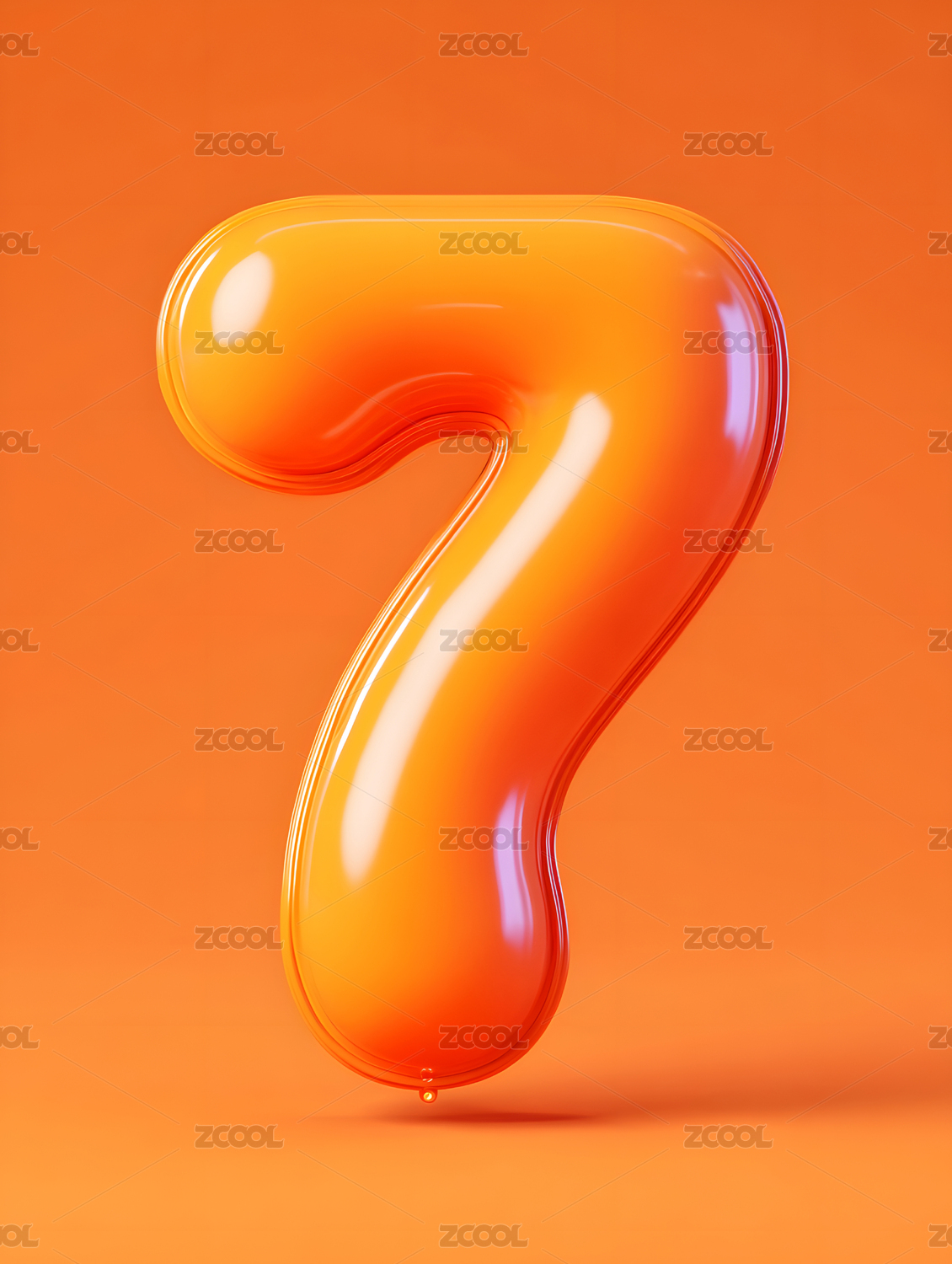 数字,7,倒计时,充气,塑料,橙色,现代,立体,细节,光泽