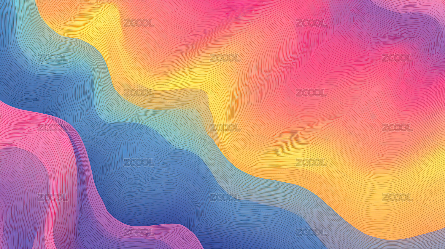 抽象风格简单复古图案色彩鲜艳彩虹色线条