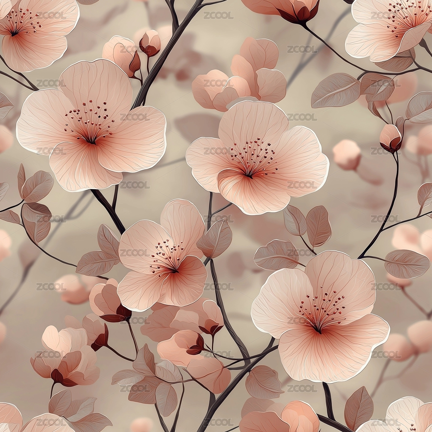 优雅粉色花卉纹理无缝背景