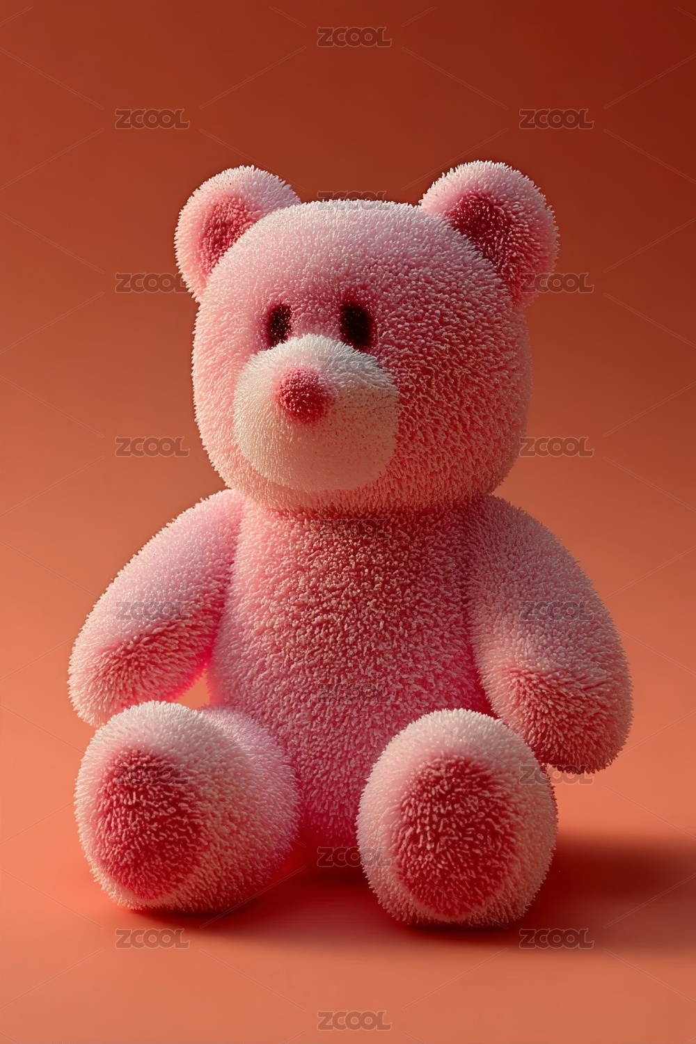 粉色,简单,背景,可爱,白色,耳朵,坐姿,熊,毛绒,玩偶