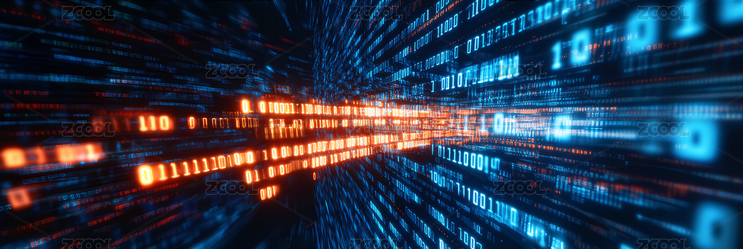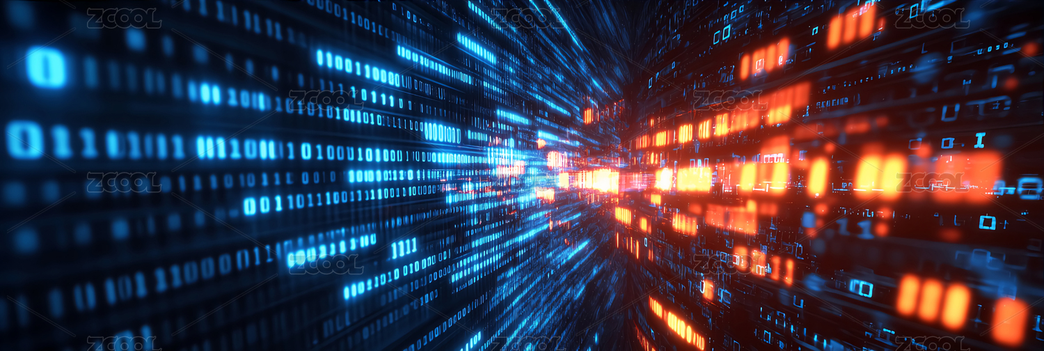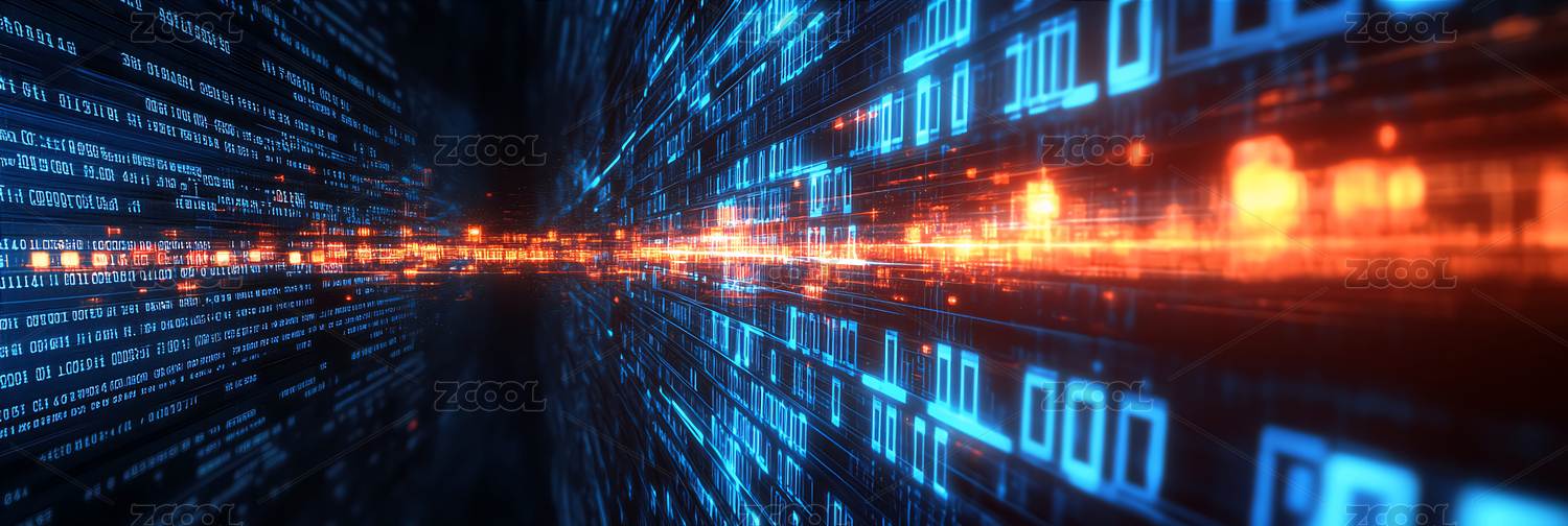 人工智能,传输,科技,背景,三维,空间,蓝橙色,数据流,渐变,光影
