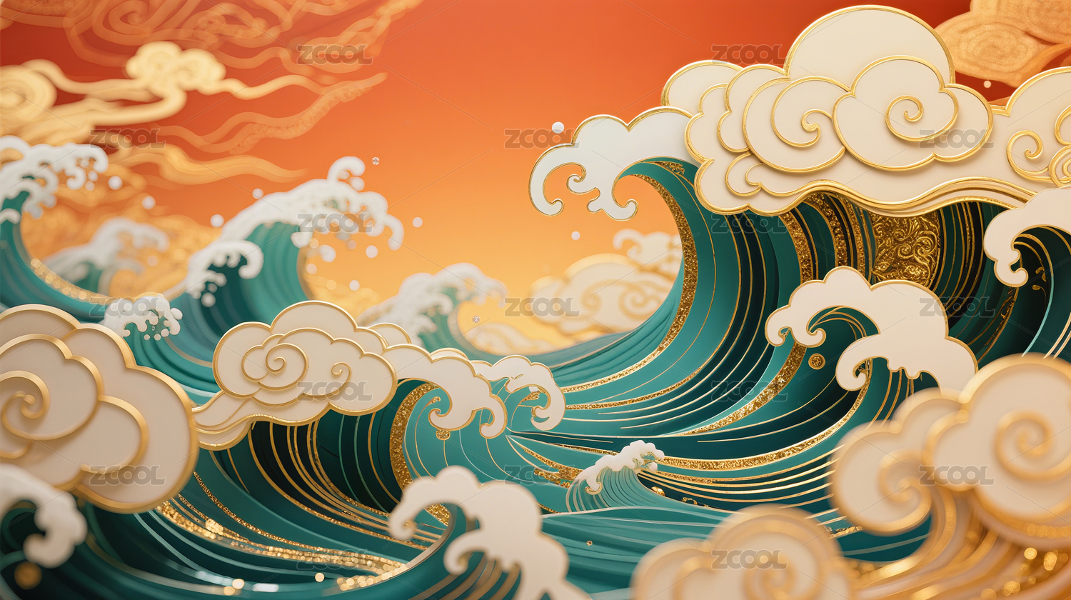 乘风破浪,扬帆起航,帆船,背景,插画,红色,节日,海洋,波浪,商务