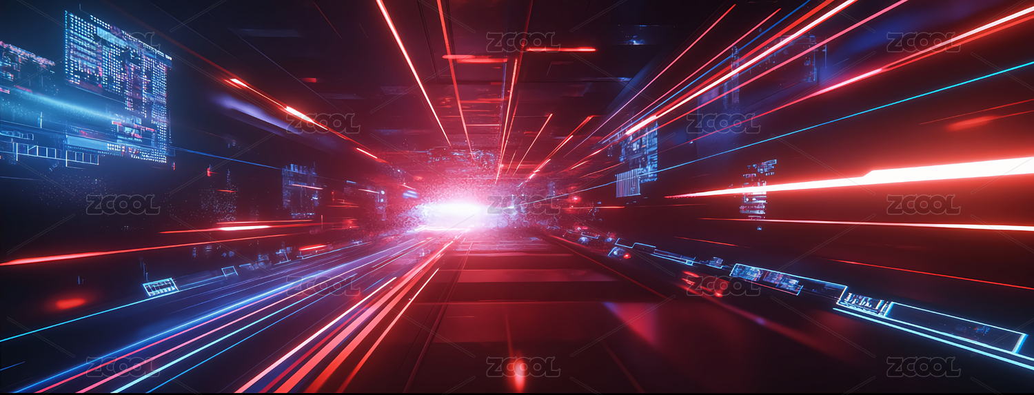 人工智能,传输,科技,背景,三维,空间,蓝橙色,数据流,渐变,光影