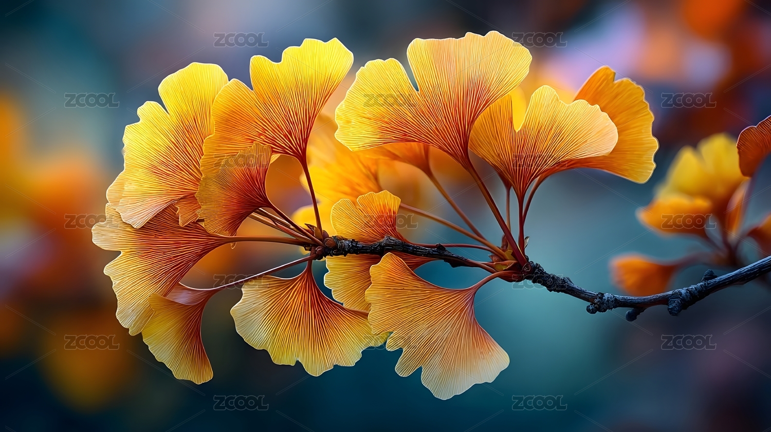 银杏叶多彩秋色特写
