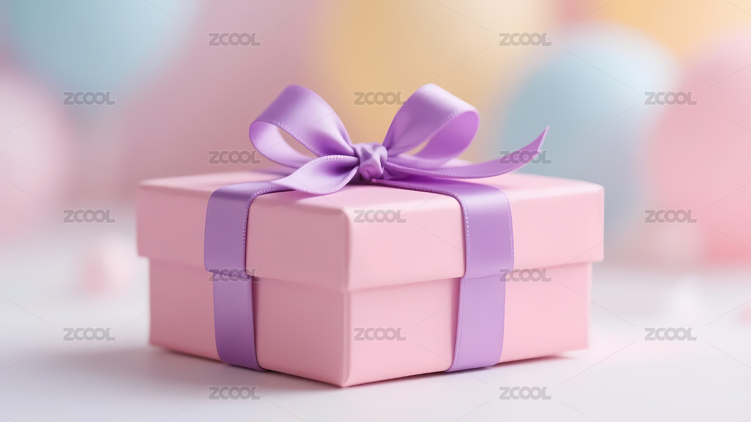 粉色礼盒配紫色蝴蝶结 节日惊喜氛围
