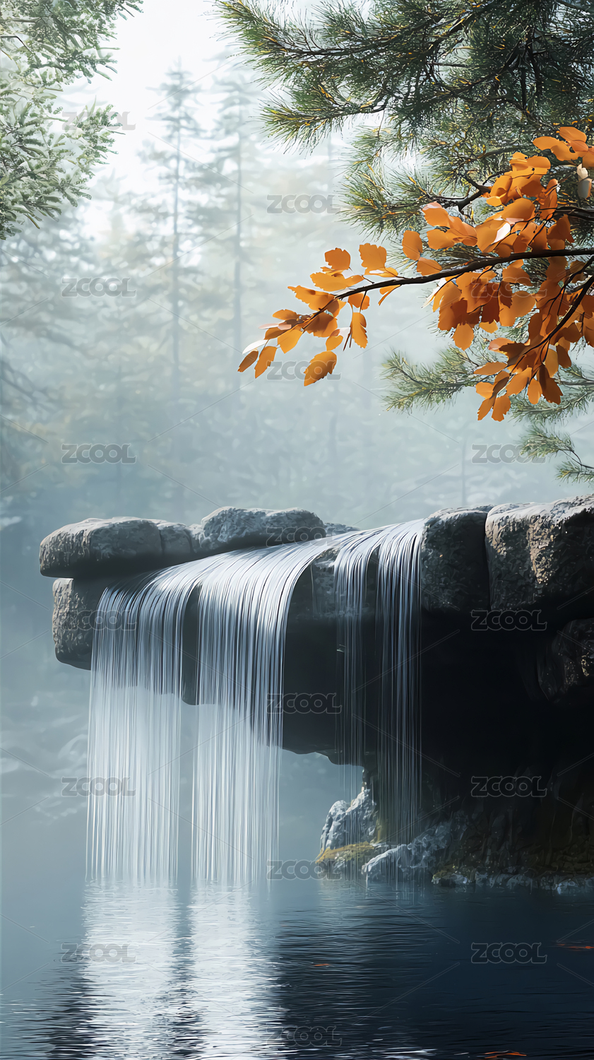 秋天,节气,立秋,红叶,树木,河流,瀑布,风景,白昼,地形
