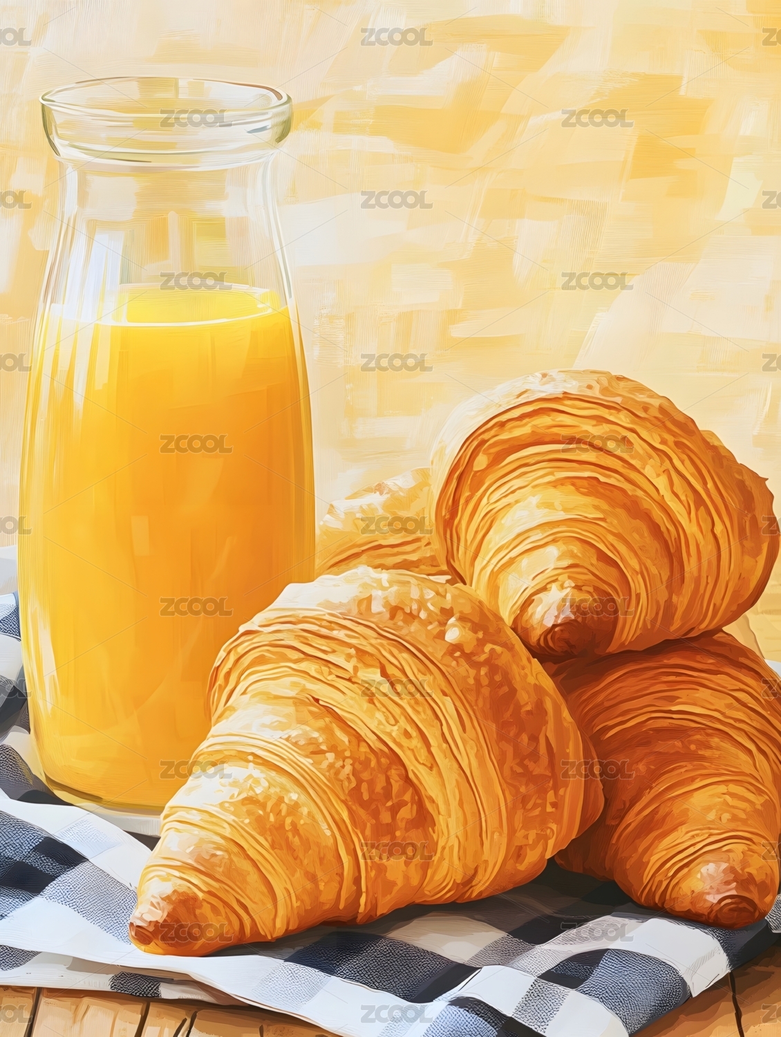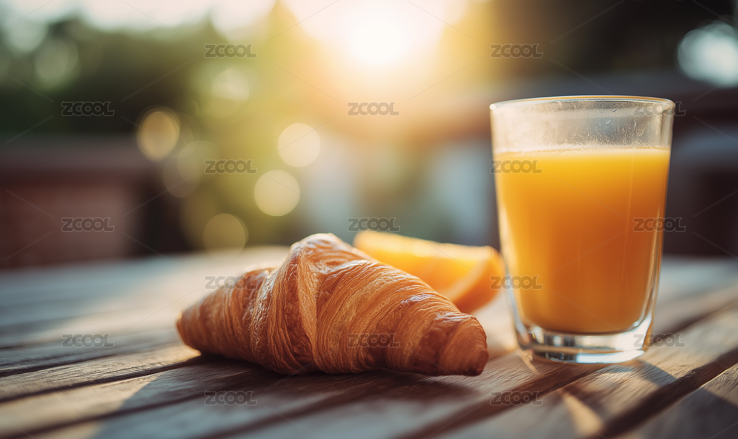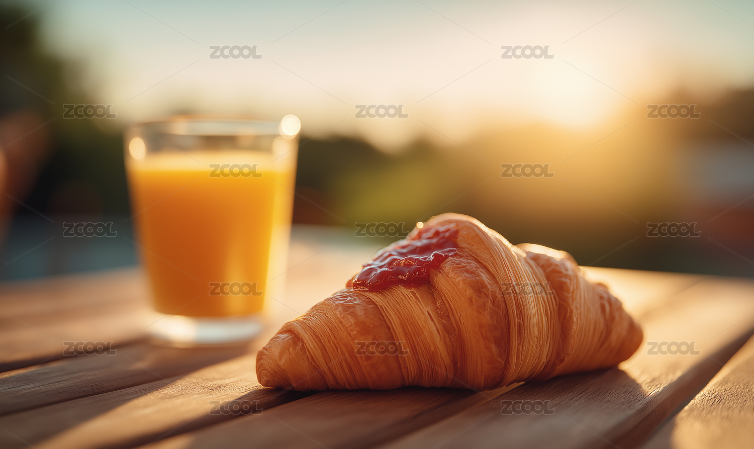 木盘,牛角包,橙汁,果酱,早餐,图案,美食,餐饮,温馨,阳光