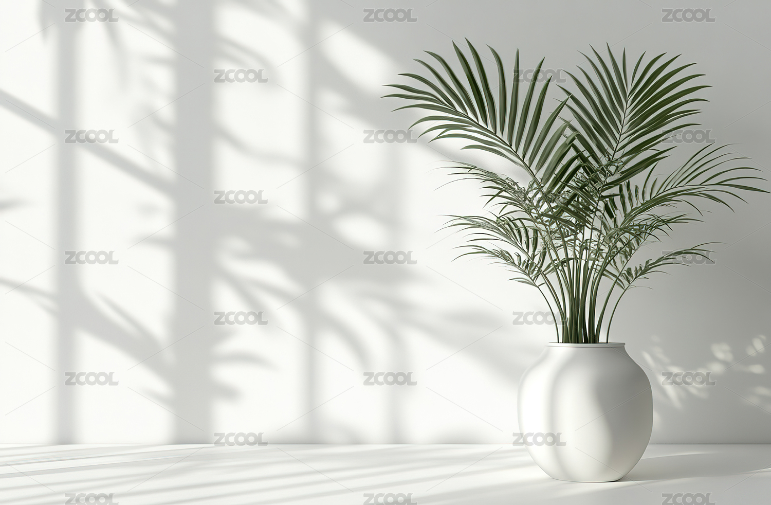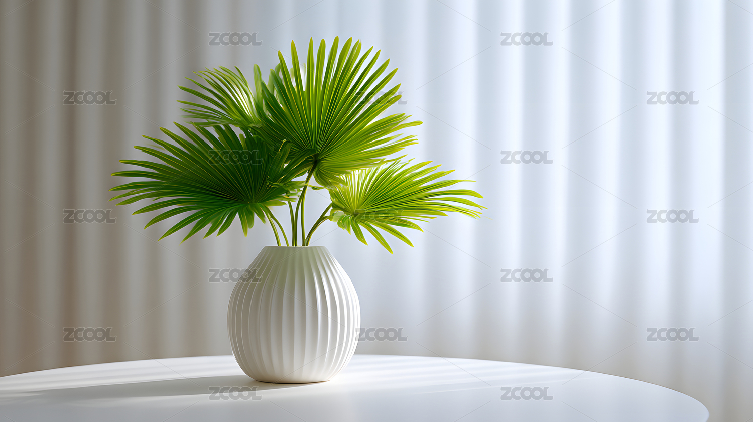 白色,桌子,棕榈叶,花瓶,极简,自然光,纹理,绿色,植物,清新