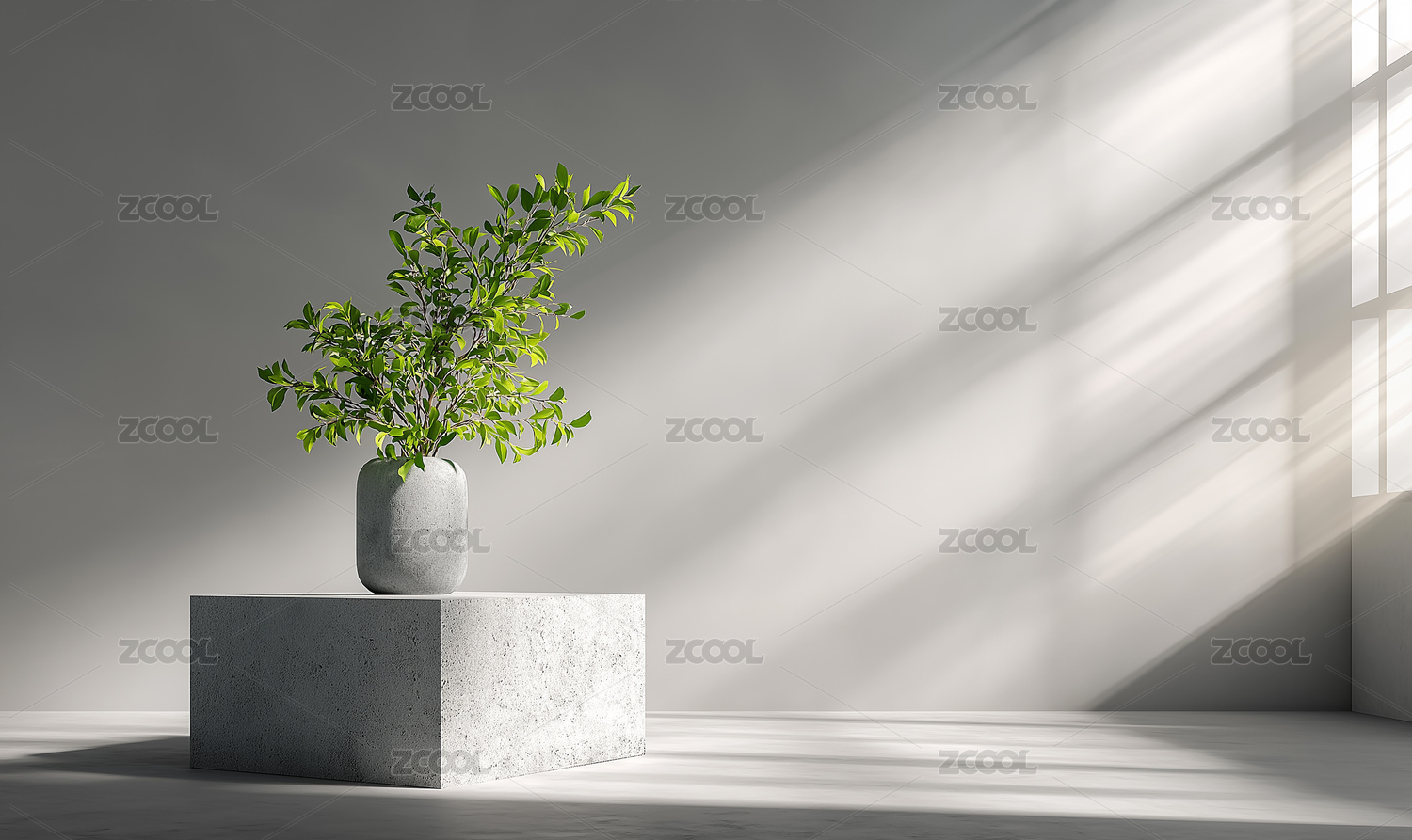 简约,空间,绿植,花瓶,3D,场景,设计,素材,艺术,现代