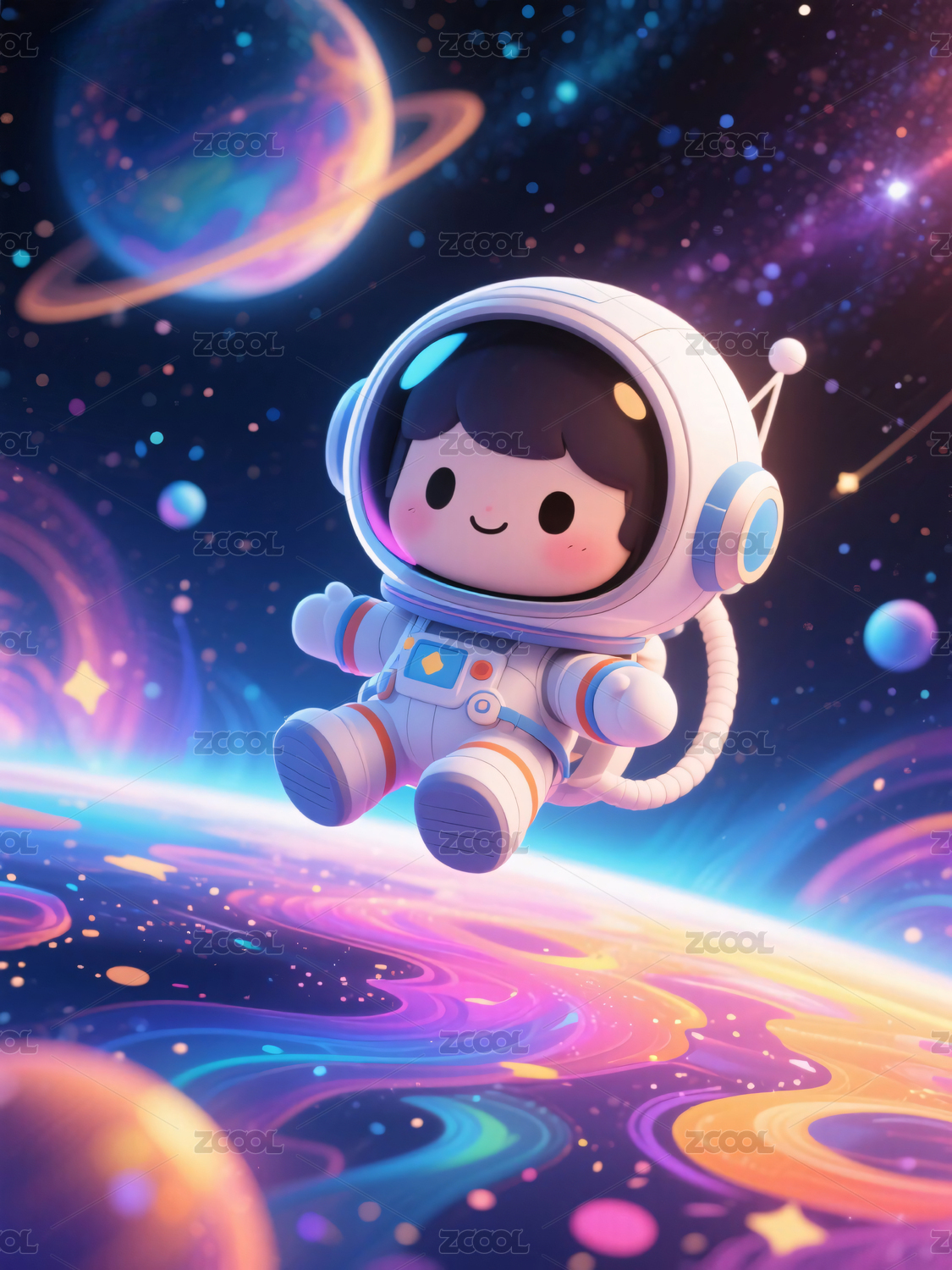 五角星,灯光,蓝天,太空,宇航员,卡通,3D,可爱风,飞舞,空中