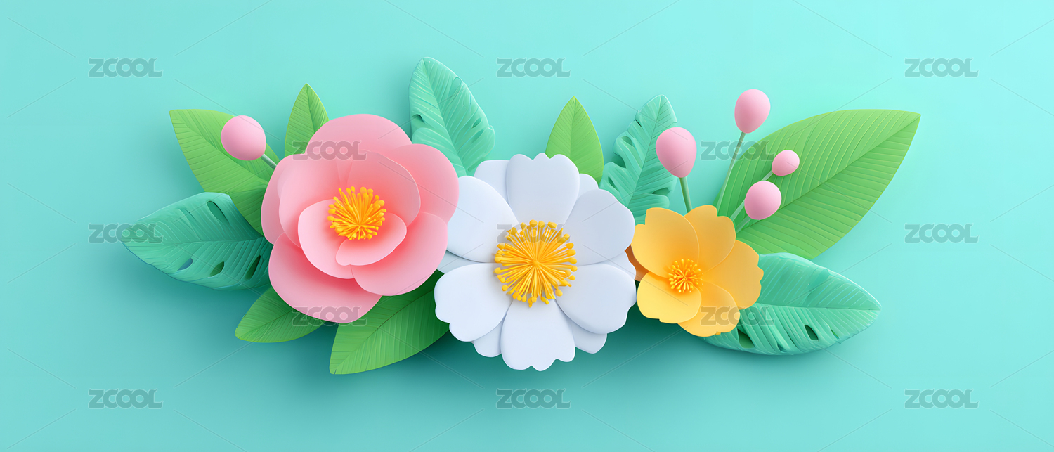 3D渲染剪影风格花卉春天剪纸艺术概念插图
