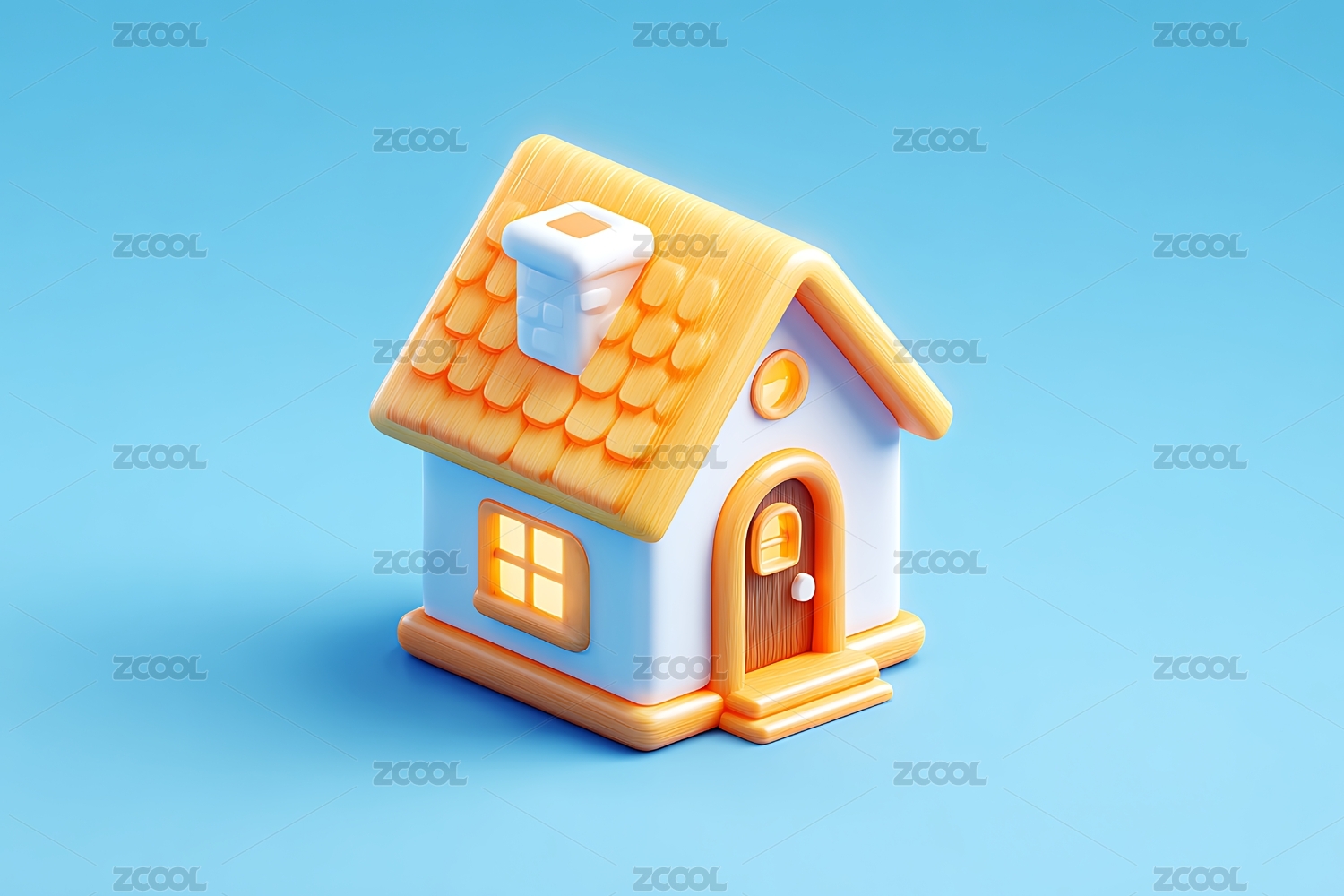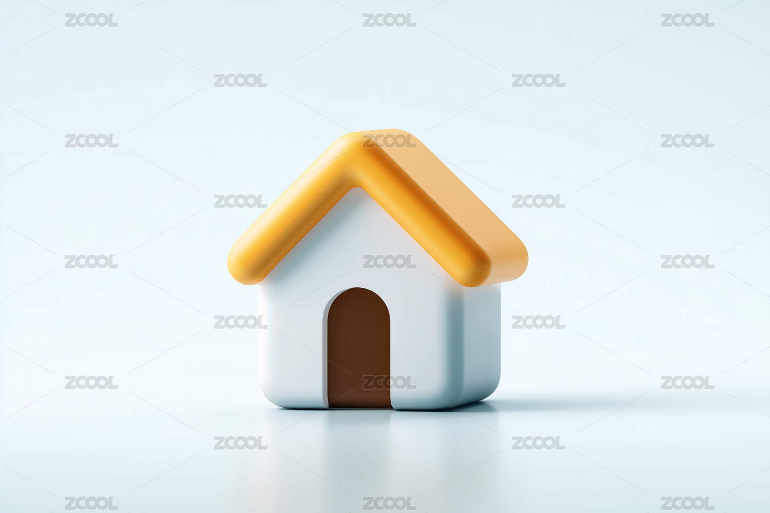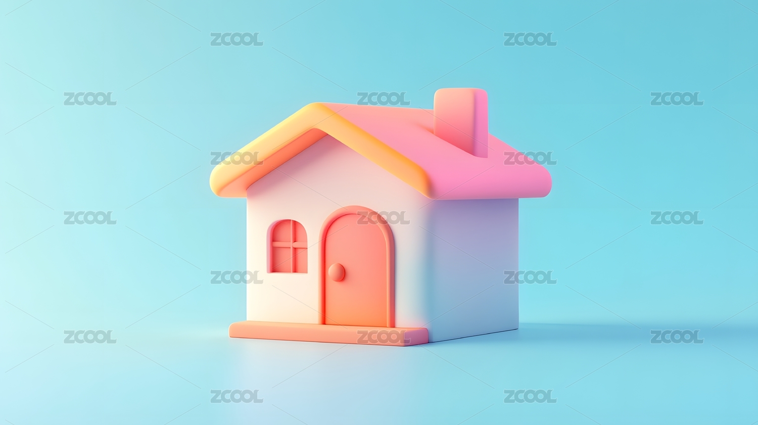 房子,房地产,图标,插画,三维,渲染,彩色,柔和,背景,虚化