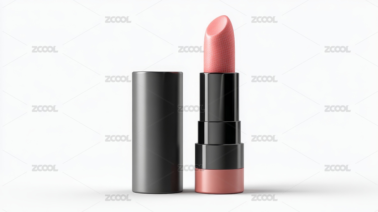 一支粉色口红及其黑色外壳特写
