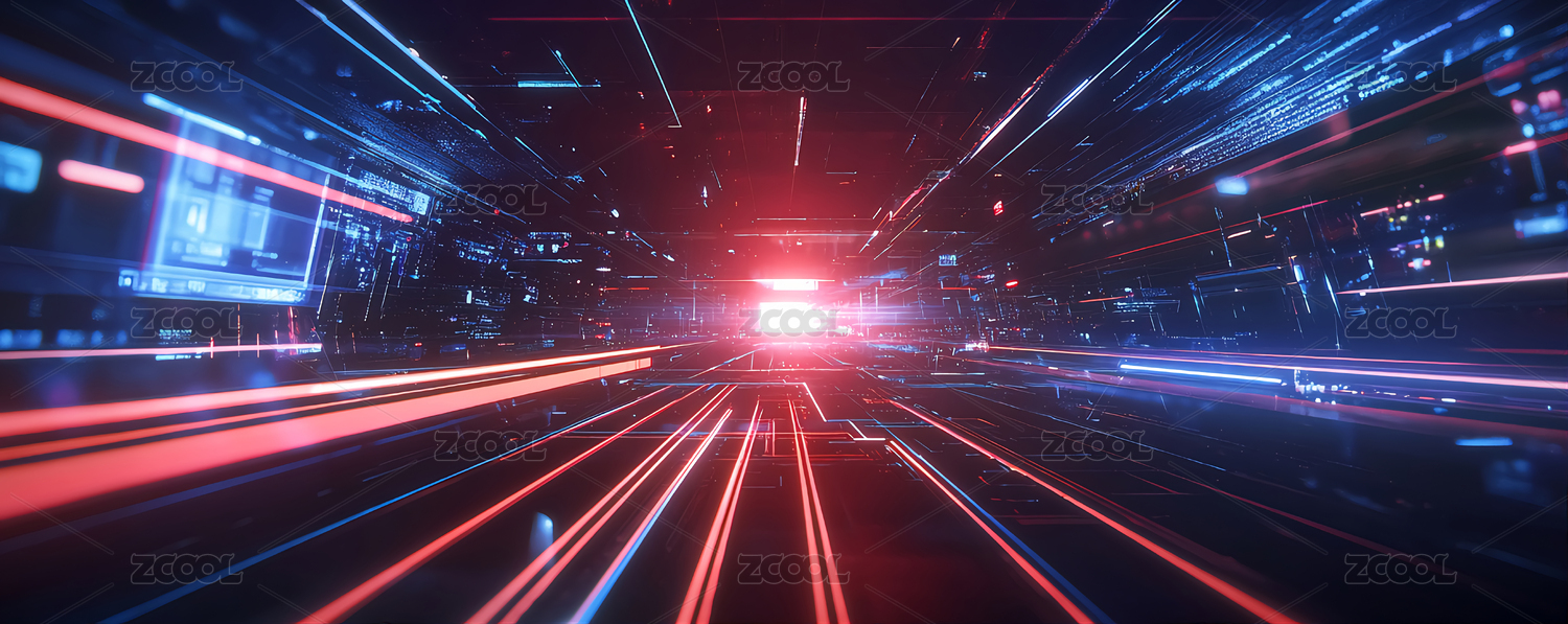 人工智能,传输,科技,背景,三维,空间,蓝橙色,数据流,渐变,光影
