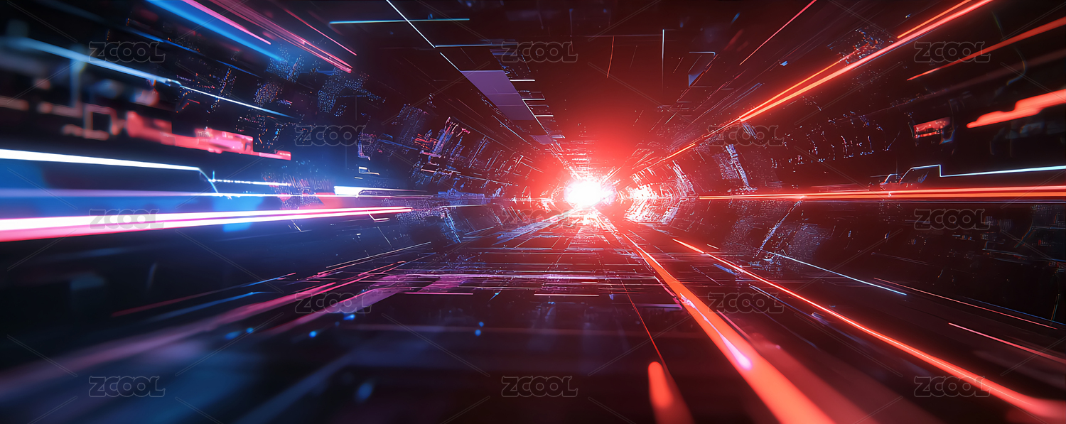 人工智能,传输,科技,背景,三维,空间,蓝橙色,数据流,渐变,光影