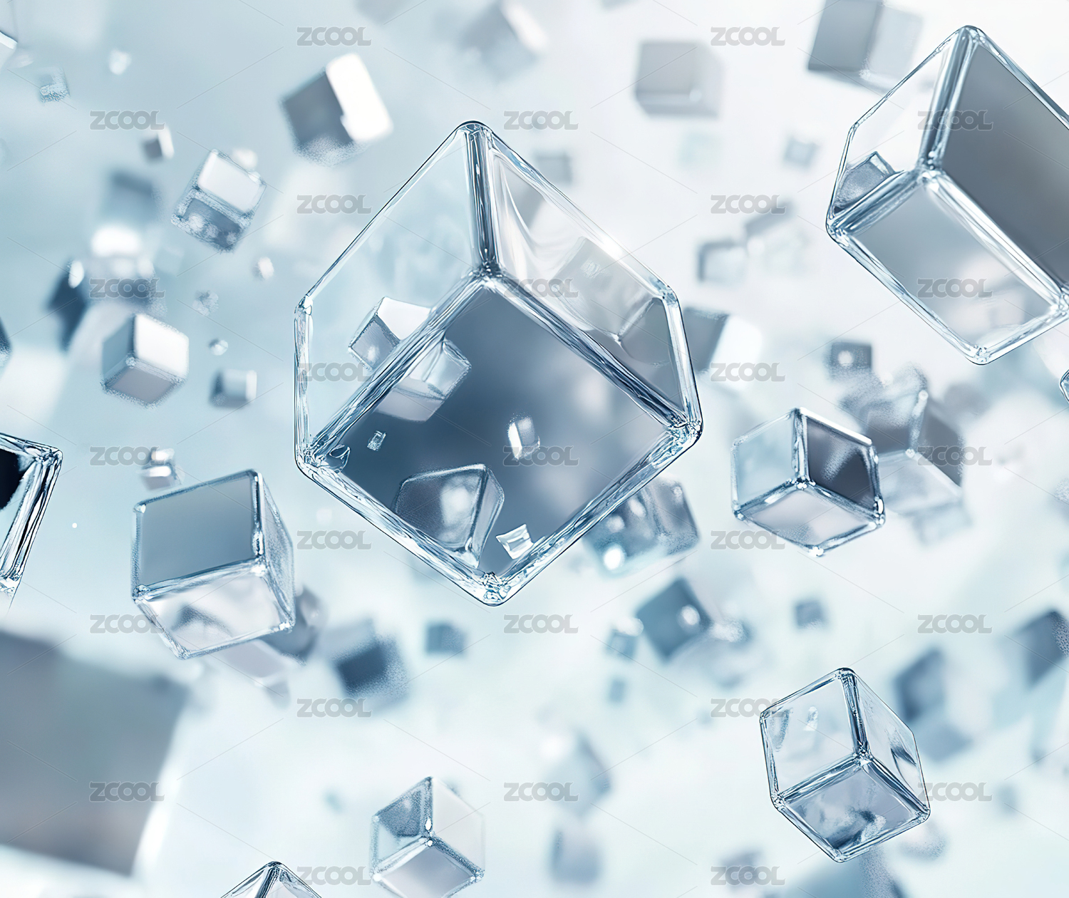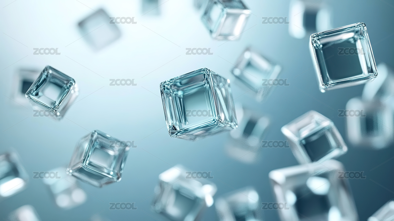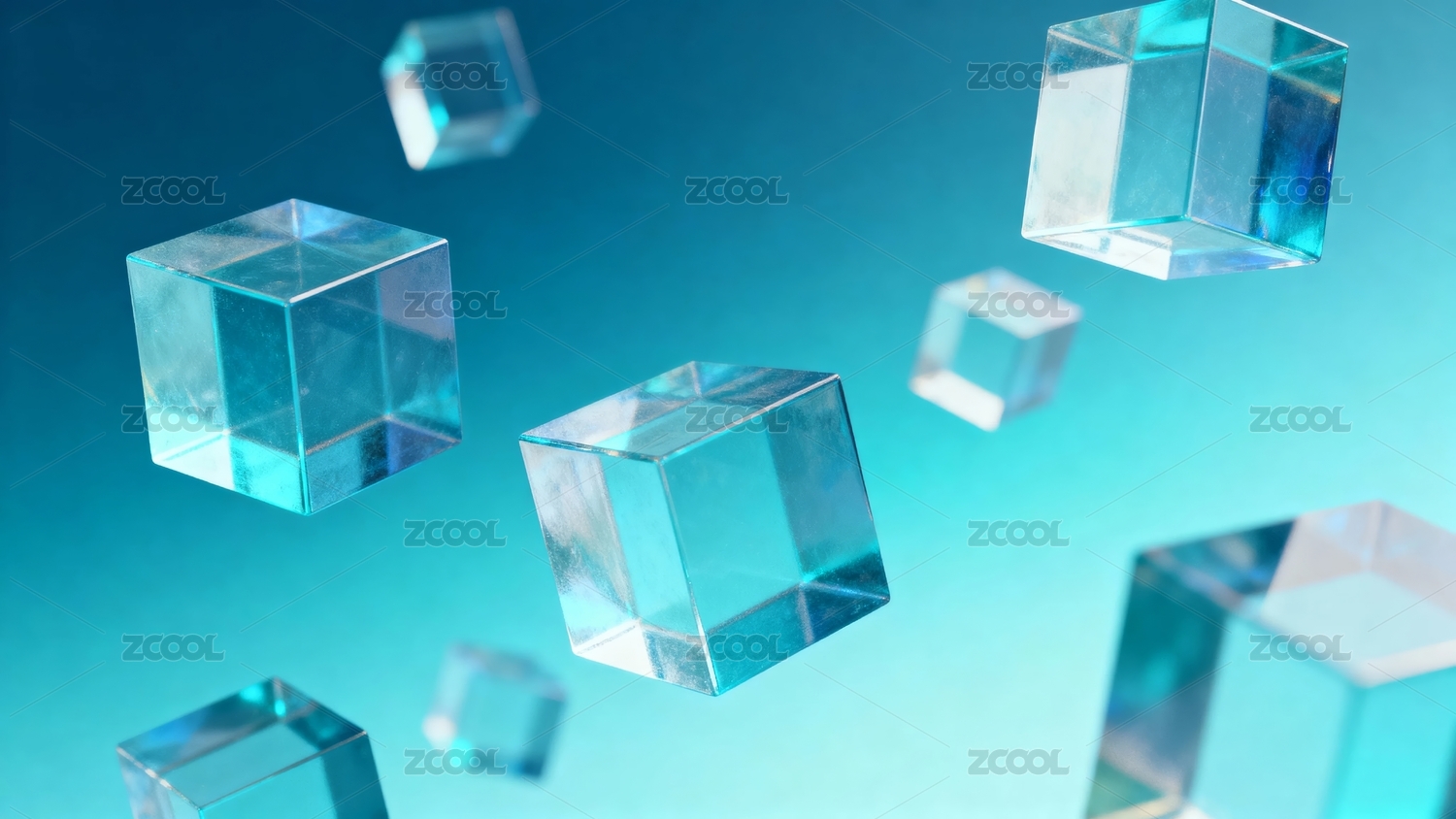 立方体,透明,漂浮,蓝色背景,几何形状,悬浮,空灵,简洁,现代,设计