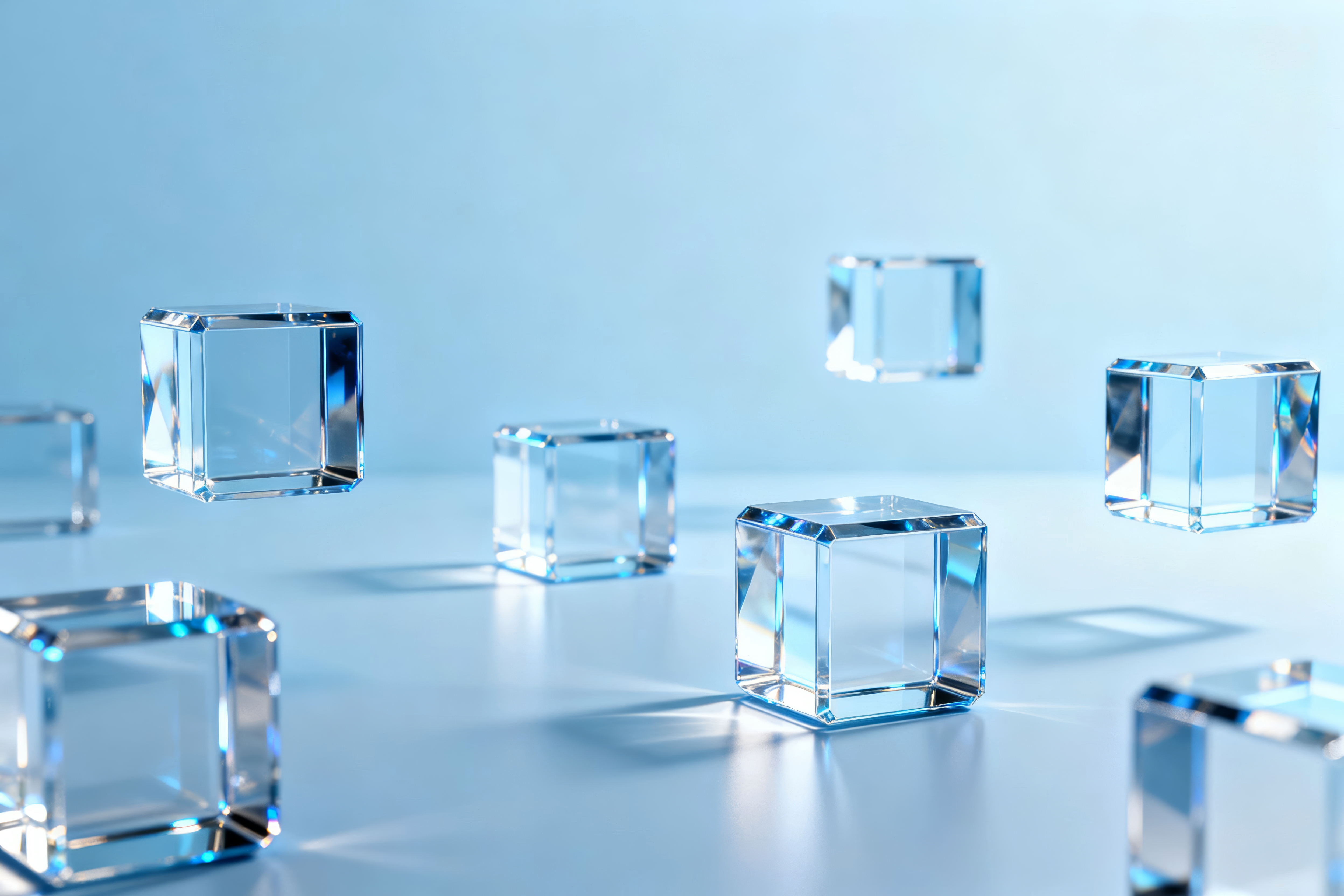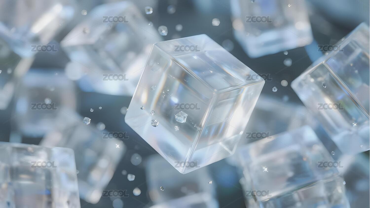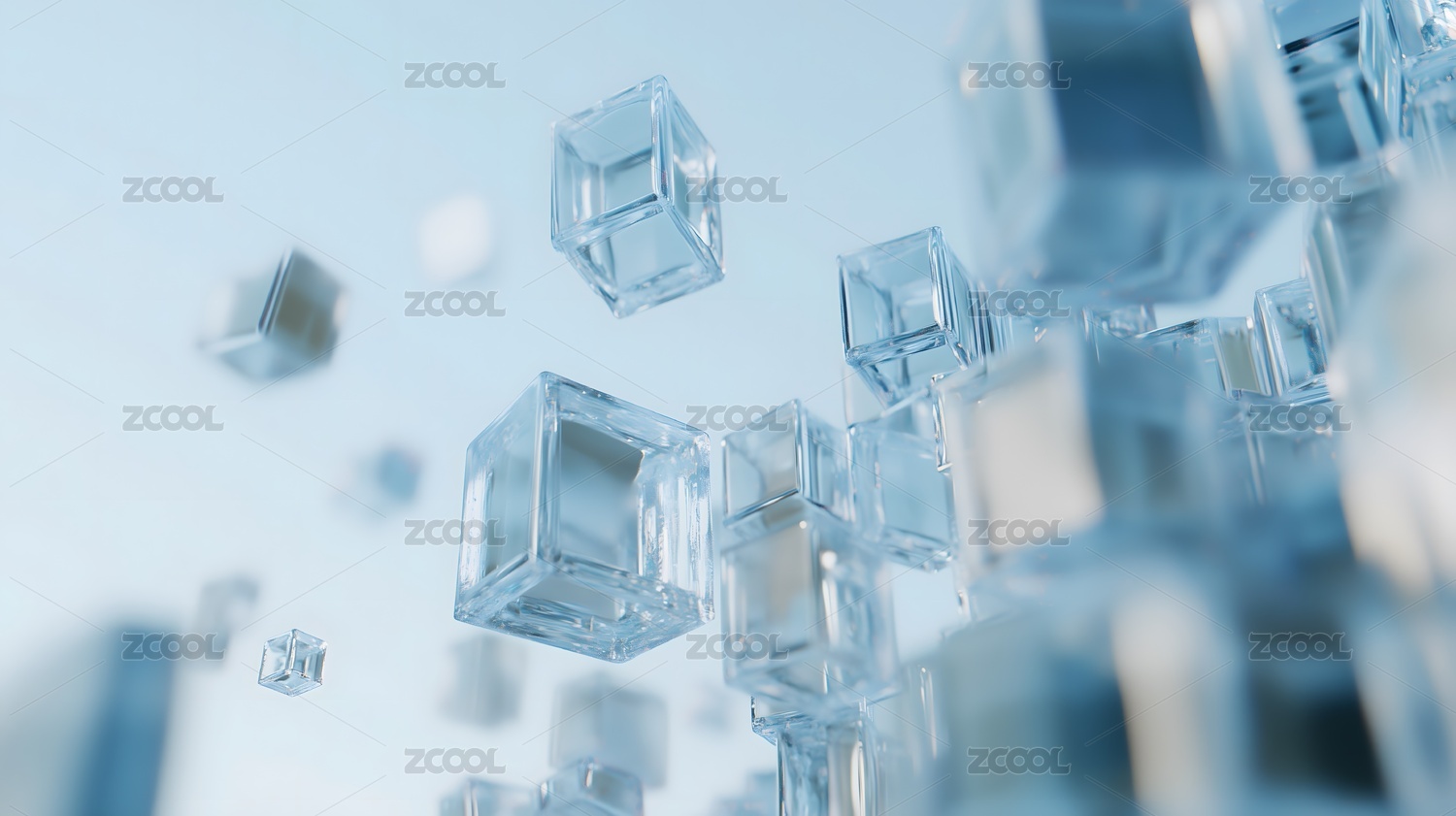 立方体,透明,漂浮,蓝色背景,几何形状,悬浮,空灵,简洁,现代,设计
