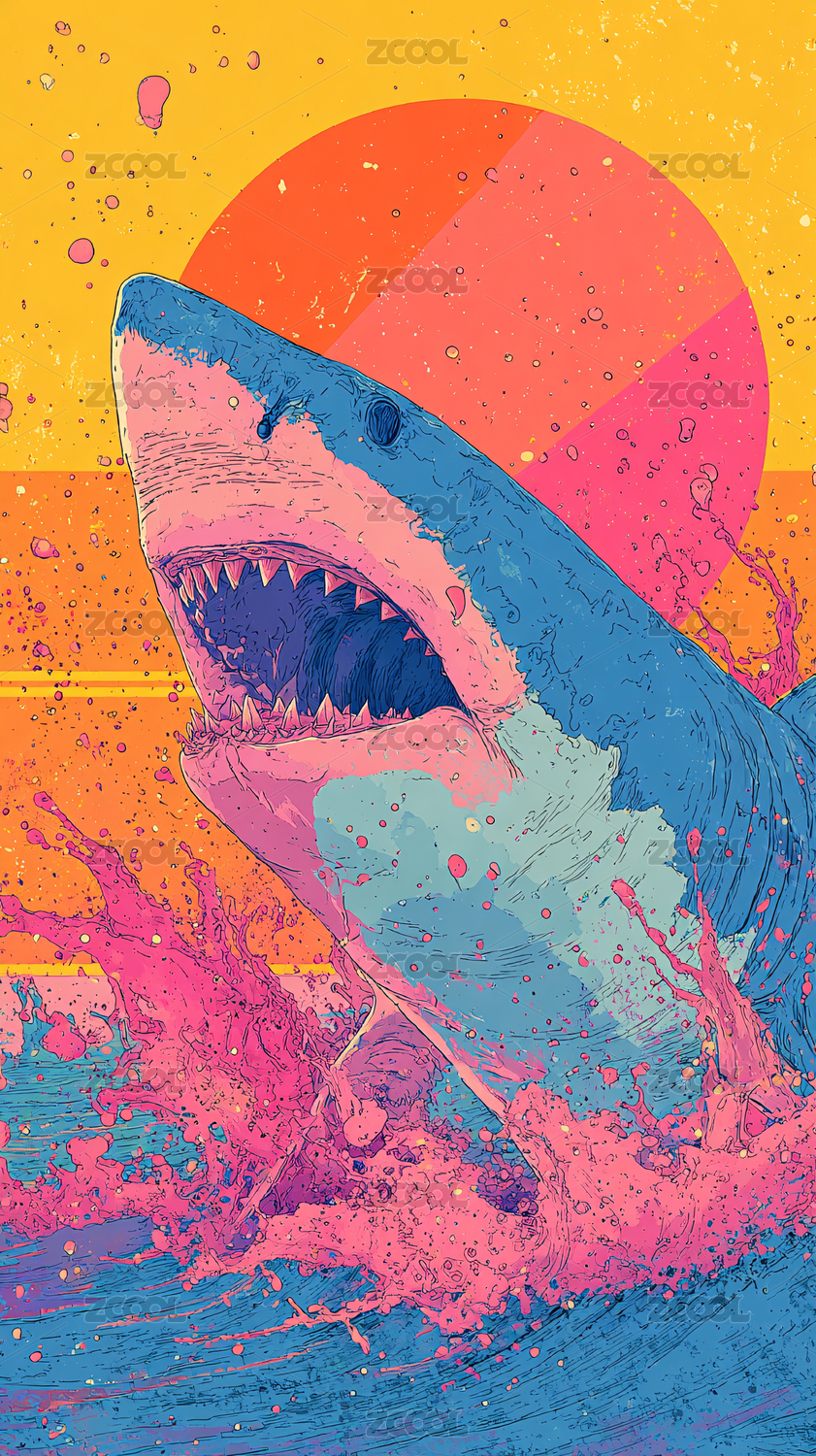 漂亮的金沙油漆抽象艺术鲨鱼插画