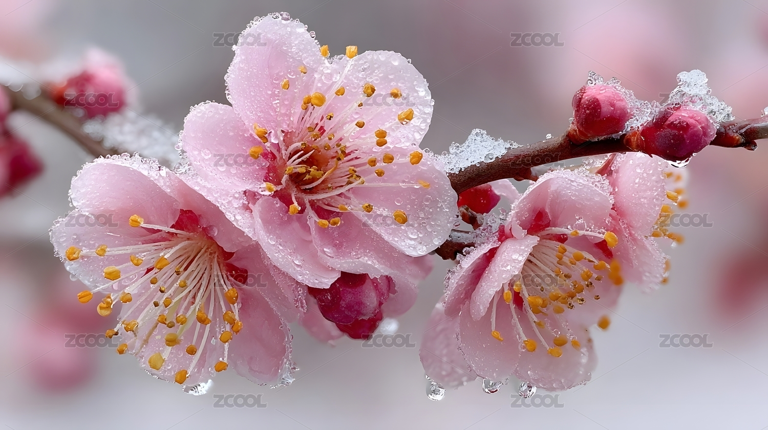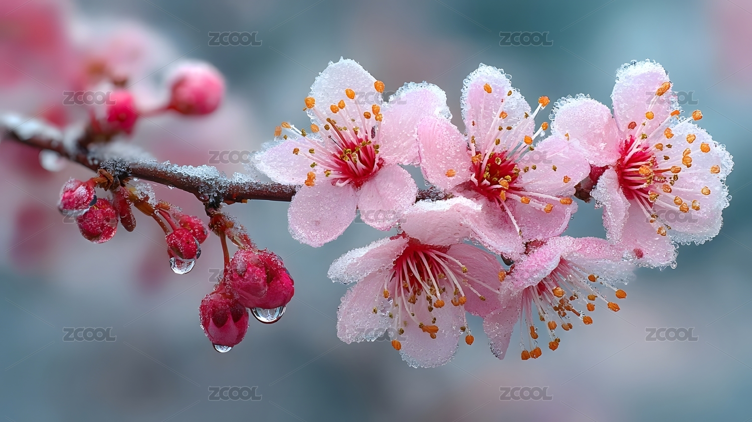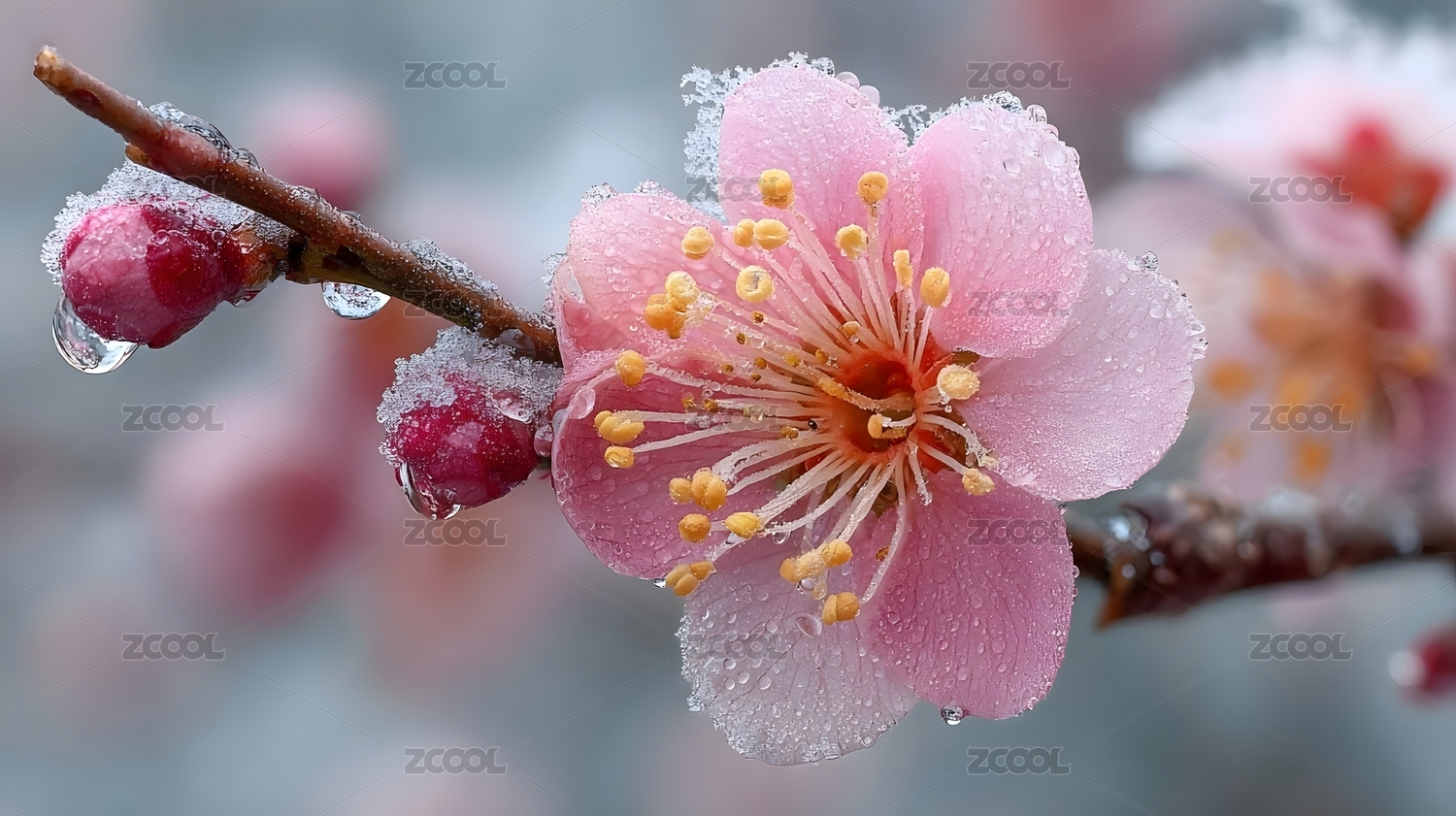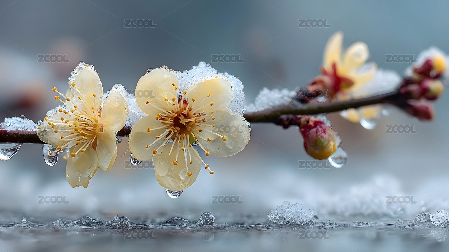 黄色,红色,花瓣,花蕊,花心,花枝,花朵,细节,自然,水滴