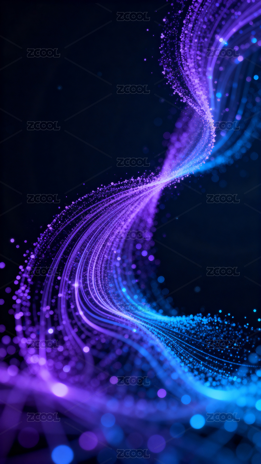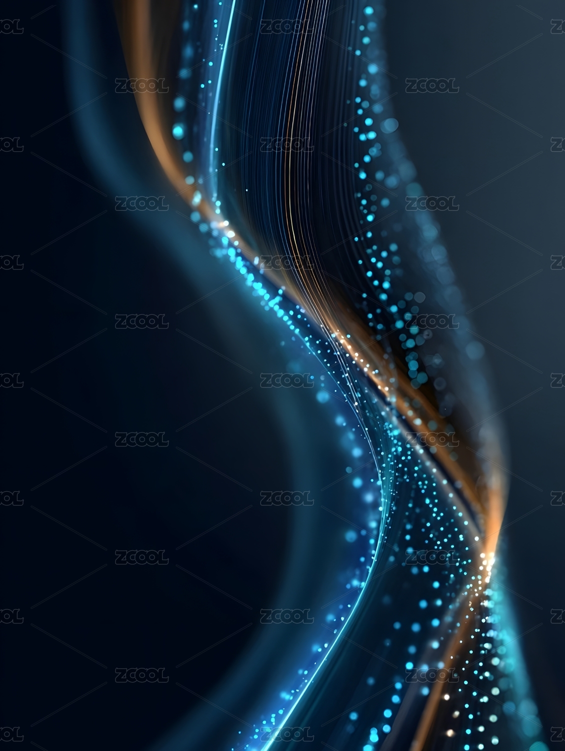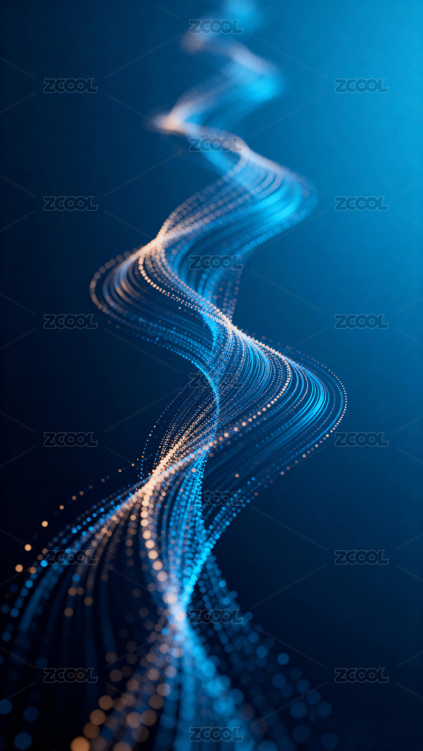 蓝色背景中漂浮的光点与流动光线交织的抽象