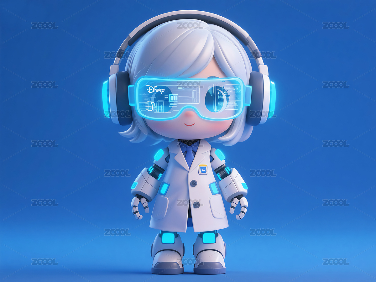 卡通,3D,机器人,特写,背景,人物,可爱风,人工智能,美女,VR眼镜