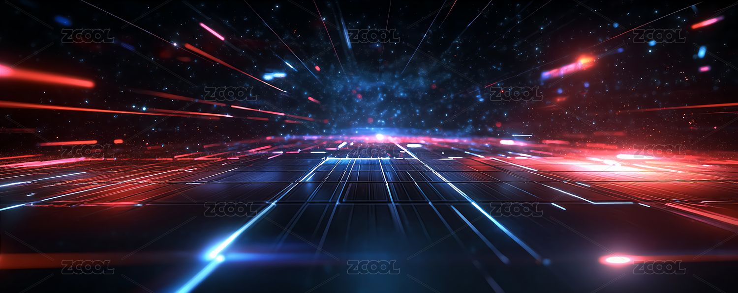 人工智能,数据流,传输,空间,三维,科技,背景,蓝红色,渐变,光影